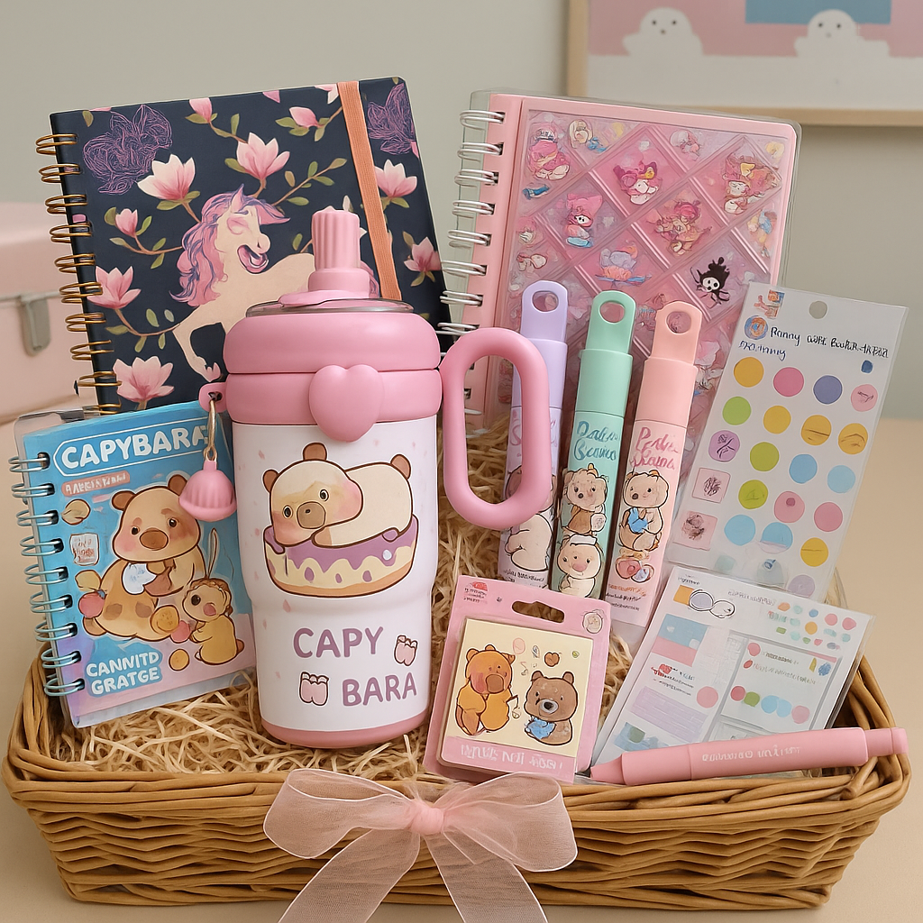 Add a dose of cuteness to your stationery collection with this Capybara Kawaii Gift Hamper, a dreamy combo curated for lovers of pastel aesthetics and charming desk accessories. Perfect for gifting or personal use, this hamper features functional and decorative items to brighten up any day.