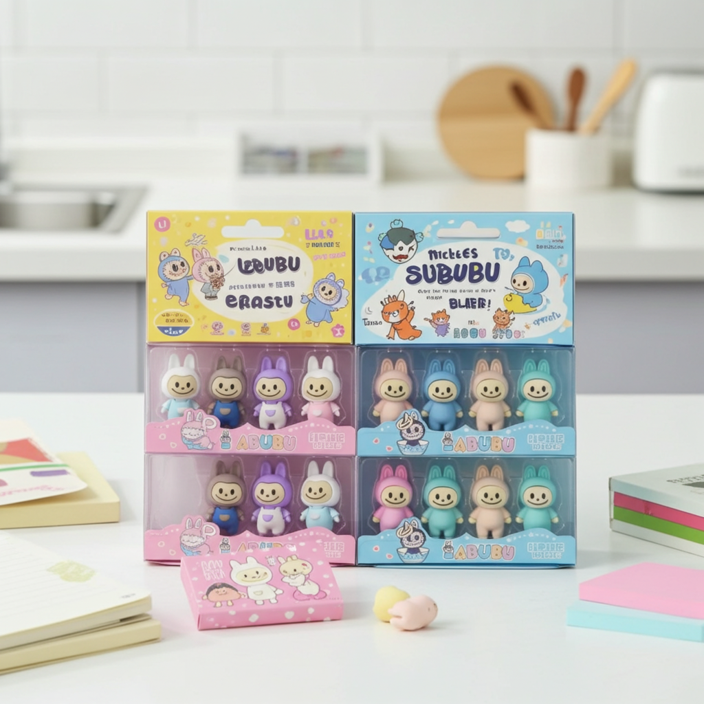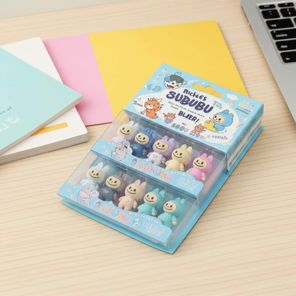 Labubu Character Erasers Set of 4 is backordered and will ship as soon as it is back in stock.
