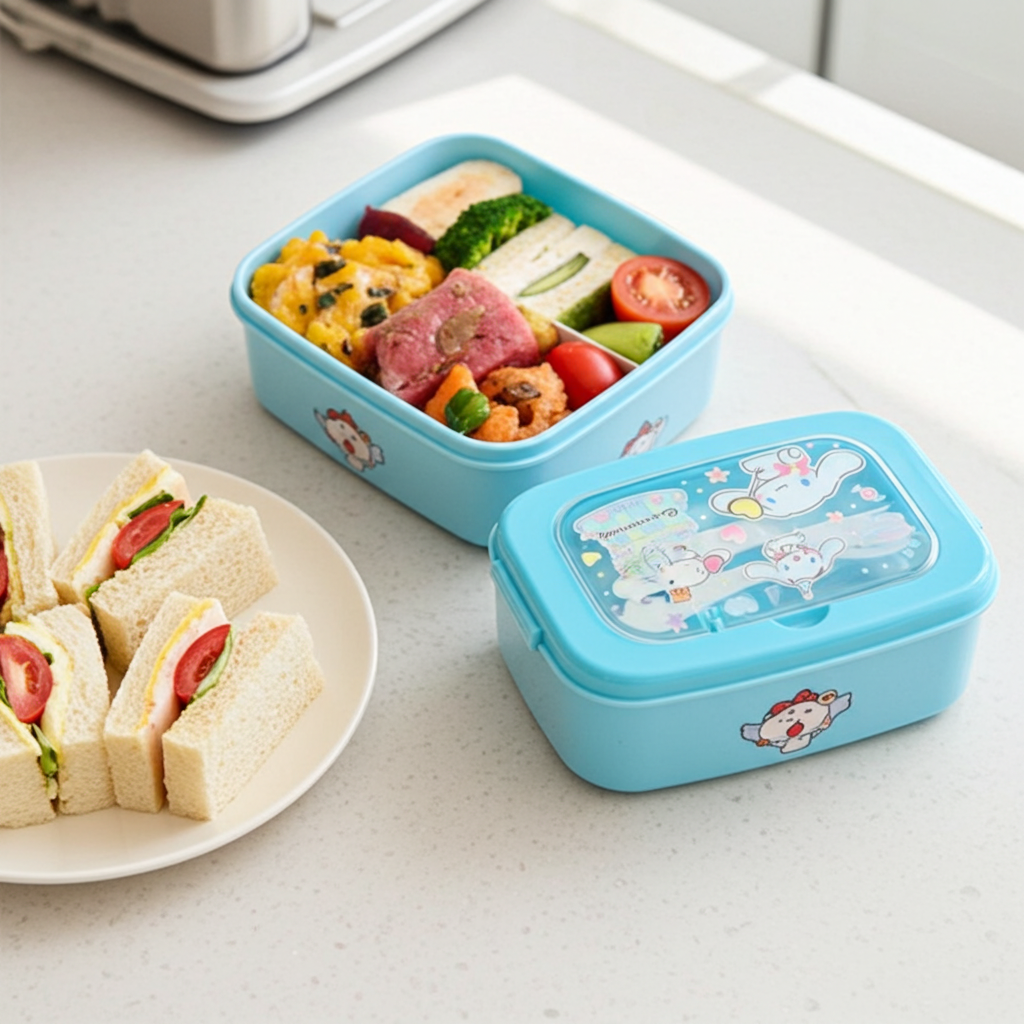 Add a pop of color to your mealtime with this Cinnamoroll Lunch Box with Fork & Spoo! Designed with a fun, playful print on top, this compact bento box is perfect for kids, students, or adults who love cute and practical storage solutions. Comes complete with a fork and spoon, making it ideal for school, office, or picnics.