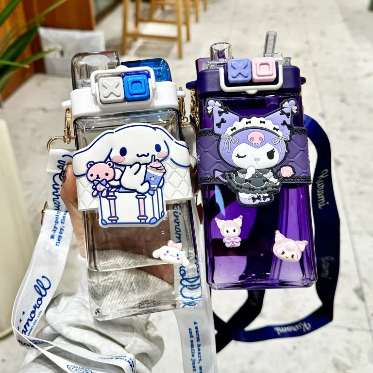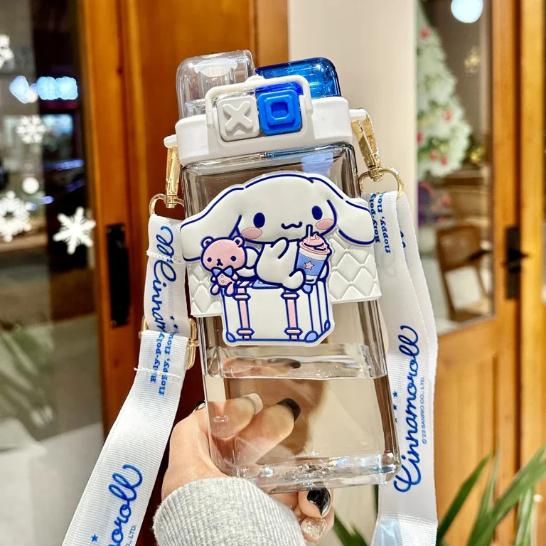 Stay hydrated in kawaii style with this adorable Cinnamoroll water bottle featuring a cute 3D design of Cinnamoroll holding a teddy and a drink. Made from high-quality, BPA-free plastic, this leakproof portable bottle is perfect for school, office, gym, or travel. The adjustable shoulder strap makes it easy to carry, while the wide-mouth opening allows for easy cleaning and adding ice cubes. A must-have for Sanrio lovers and anyone who wants to add a touch of cuteness to their daily hydration routine.