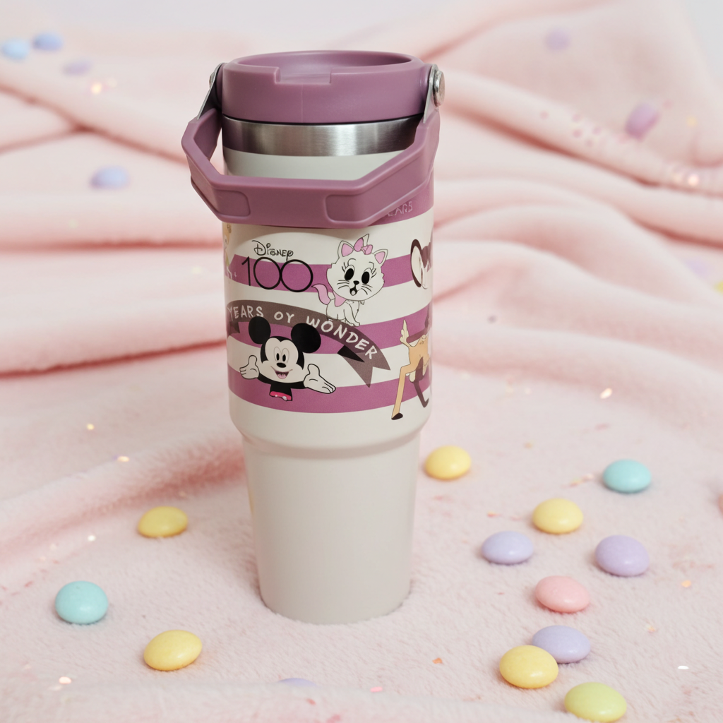 Celebrate 100 years of Disney magic with this charming Disney 100 Years of Wonder Travel Tumbler! Featuring beloved characters like Mickey Mouse, Bambi, and Marie from The Aristocats, this whimsical and stylish 16oz tumbler is the perfect companion for fans of all ages.