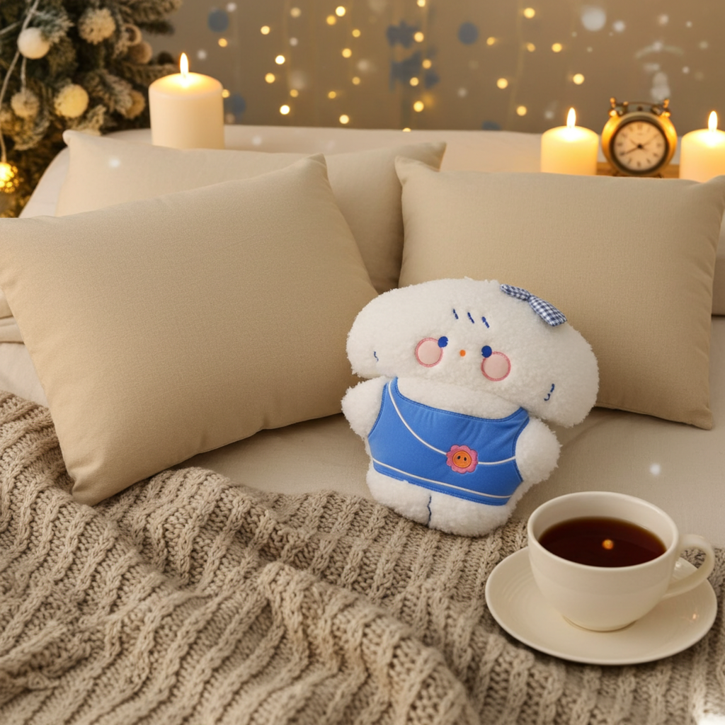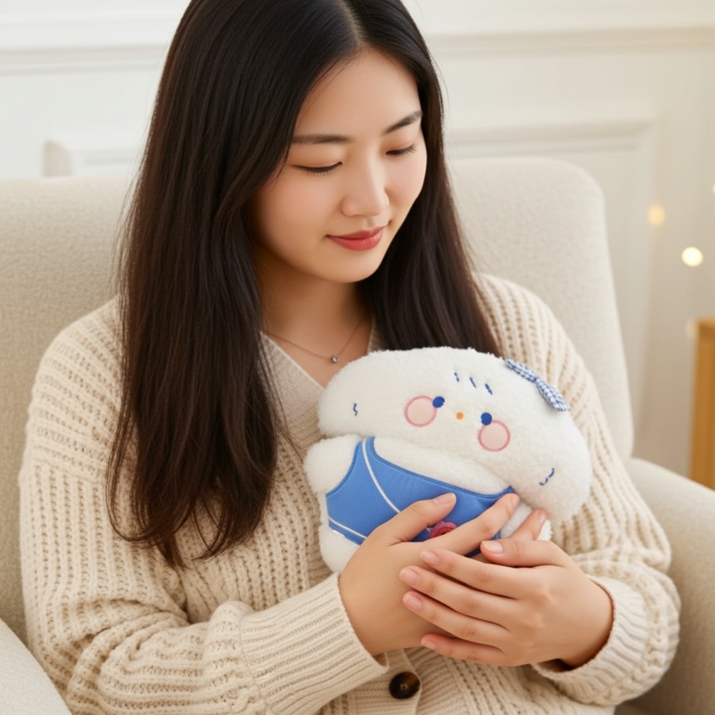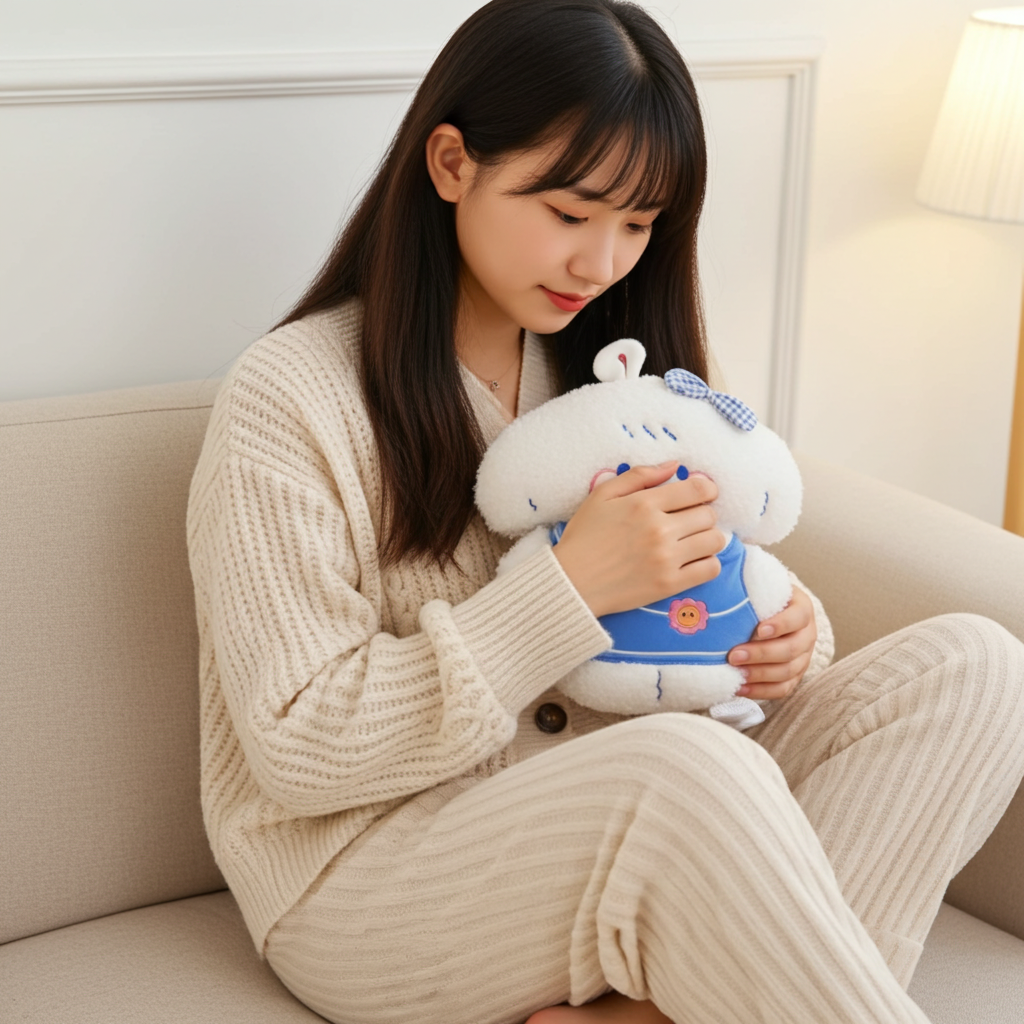 Wrap yourself in warmth and cuteness with this Blue Kawaii Plush Hot Water Bag! Featuring a soft white plush character dressed in a charming blue outfit with a happy flower patch, this hot water bottle is the ultimate cozy companion for chilly nights, cramp relief, or a comforting bedtime routine.