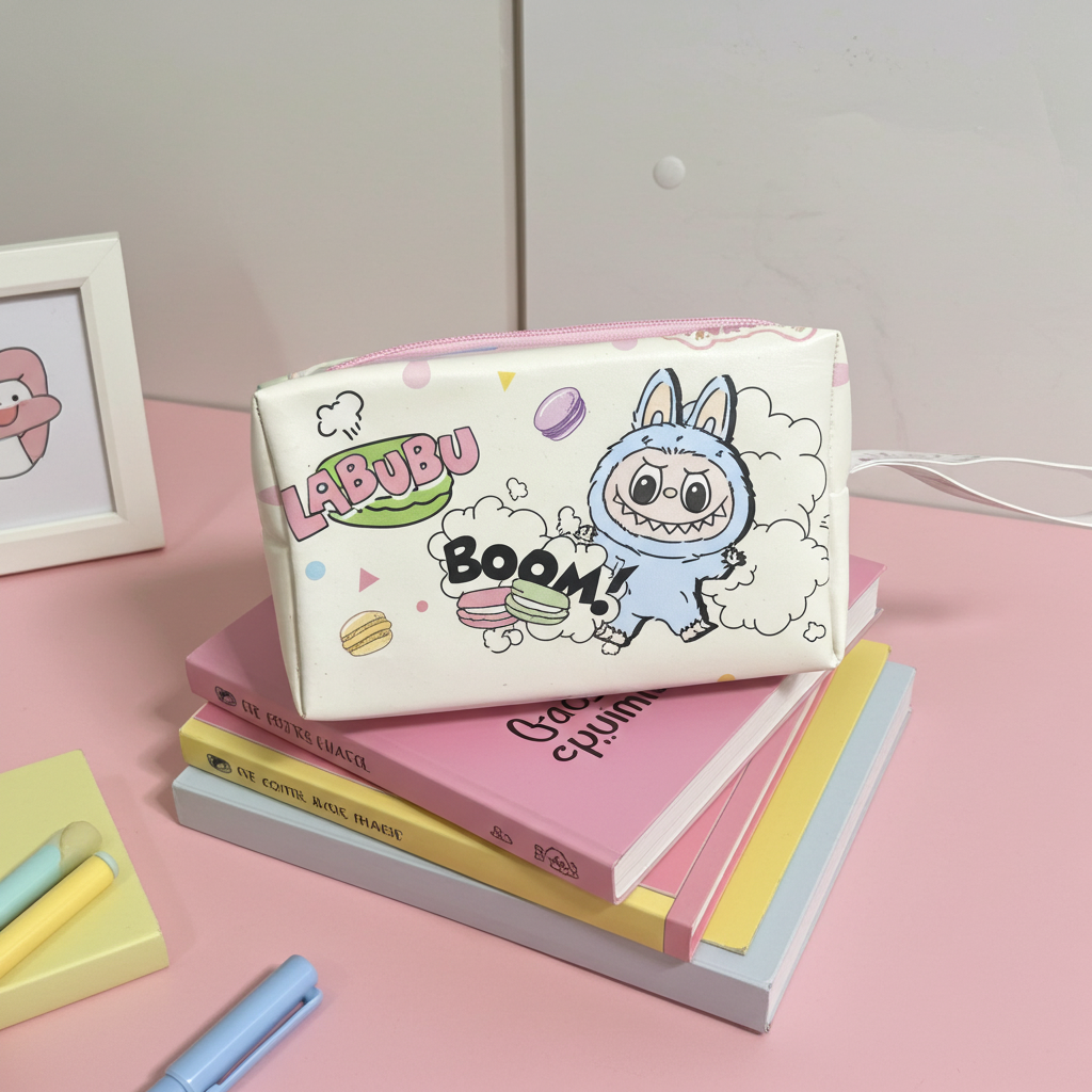 Carry your essentials in style with this Large Labubu Storage Bag! Featuring the playful and mischievous Labubucharacter with colorful macaron accents, this spacious pouch is perfect for storing stationery, makeup, travel items, or small gadgets. Its adorable design and roomy interior make it both practical and irresistibly cute.