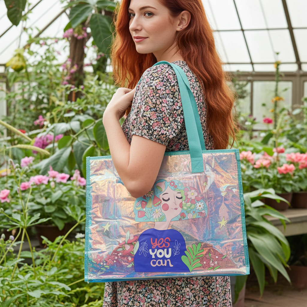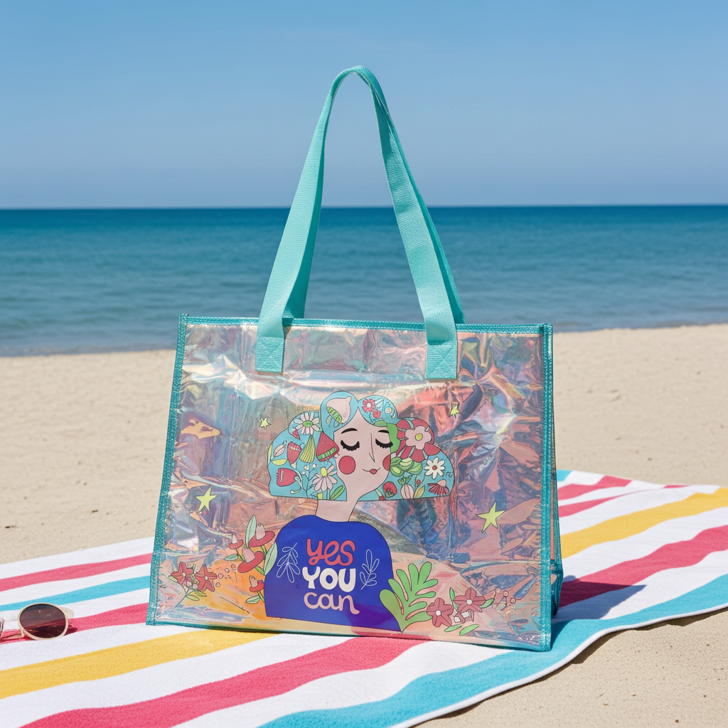 Turn heads wherever you go with this Large Holographic Tote Bag, designed to shine in every light. Featuring a stunning iridescent finish that shifts colors beautifully, this statement bag combines style with functionality, making it perfect for work, shopping, beach days, gym, or travel.