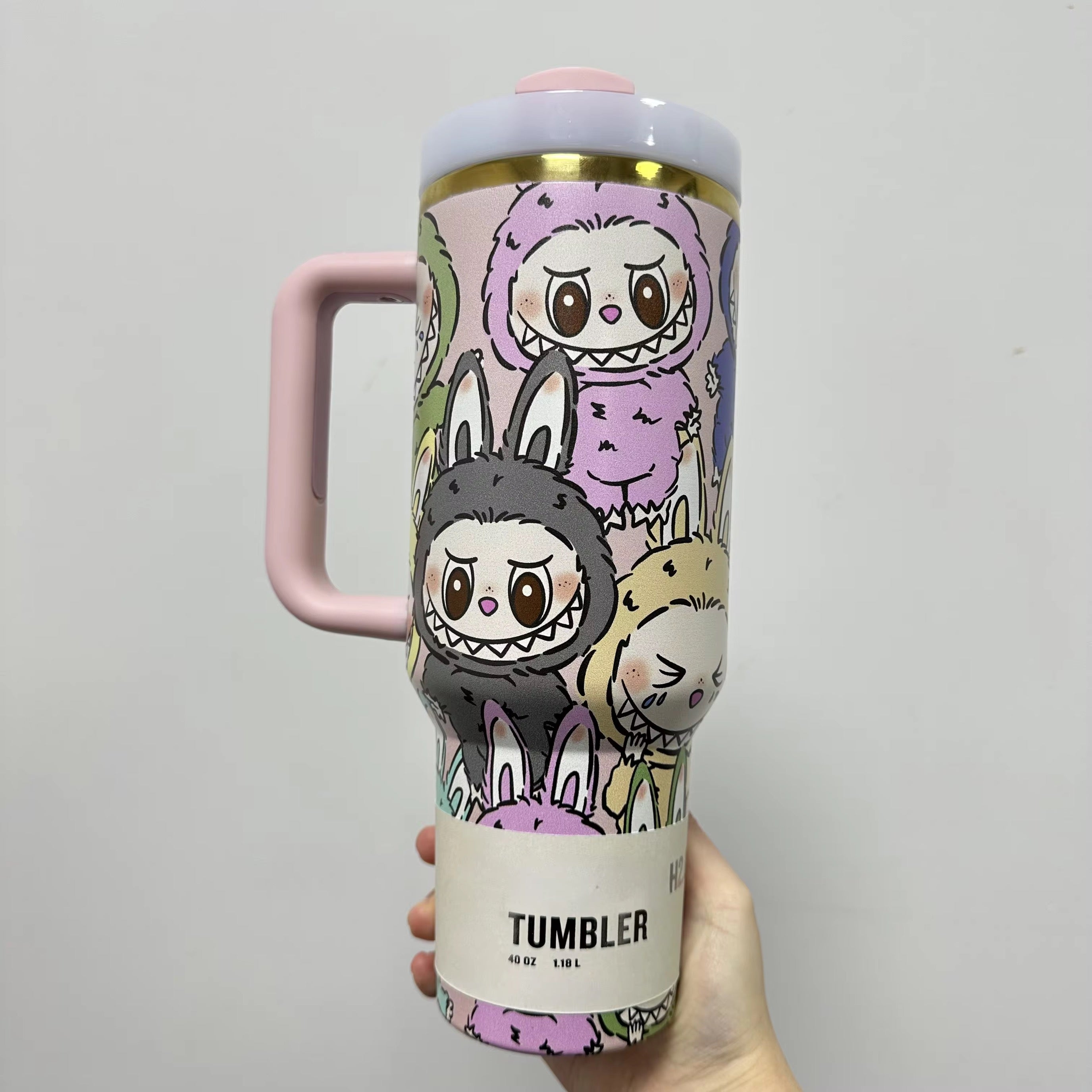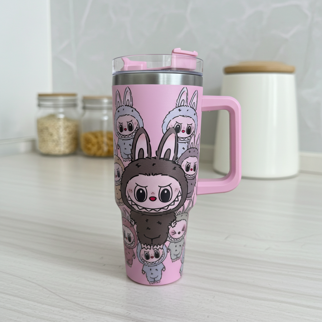 Stay hydrated in style with this Pink Labubu Insulated Tumbler, featuring the beloved Labubu character from The Monsters by POP MART. Decorated with multiple playful Labubu illustrations in pastel tones, this tumbler is perfect for collectors and kawaii lovers who enjoy adding a fun twist to their drinkware.