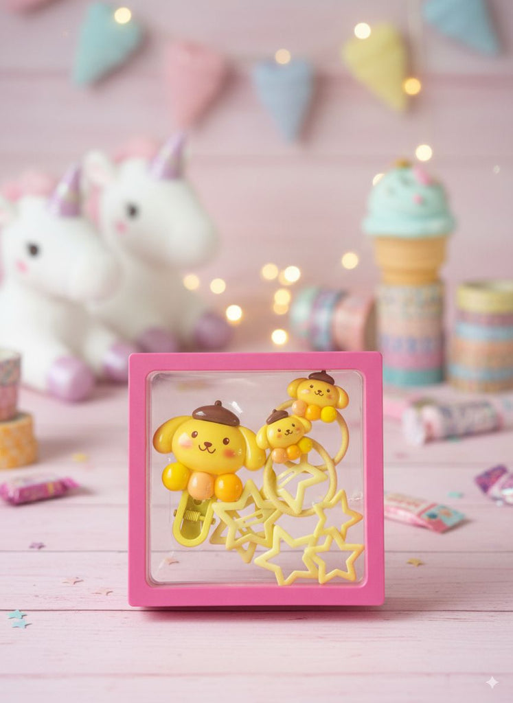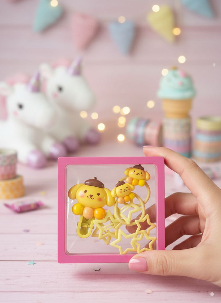 Pompompurin Hair Accessories Set – Cute Yellow Clips & Elastic Bands