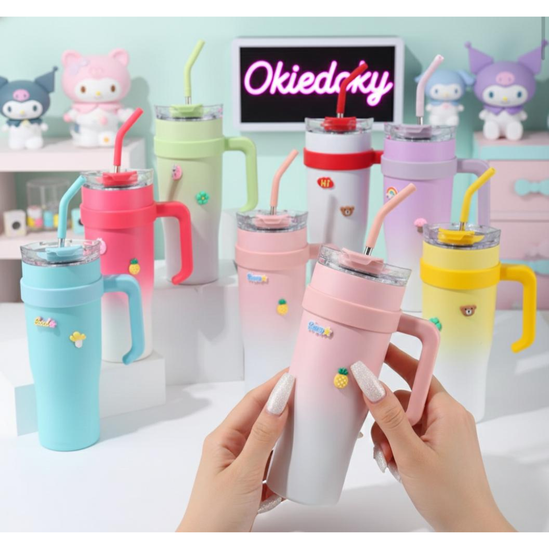 Sip in style with this Stylish Dual-Tone Tumbler featuring a fun detachable charm—choose from heart, bow, star, and more! 💖✨