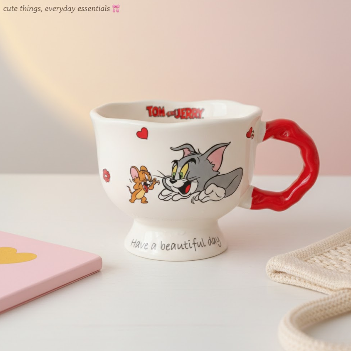 Start your mornings with nostalgia and cuteness using this Tom & Jerry Cartoon Mug, featuring the iconic duo Tom & Jerry 🐱🐭