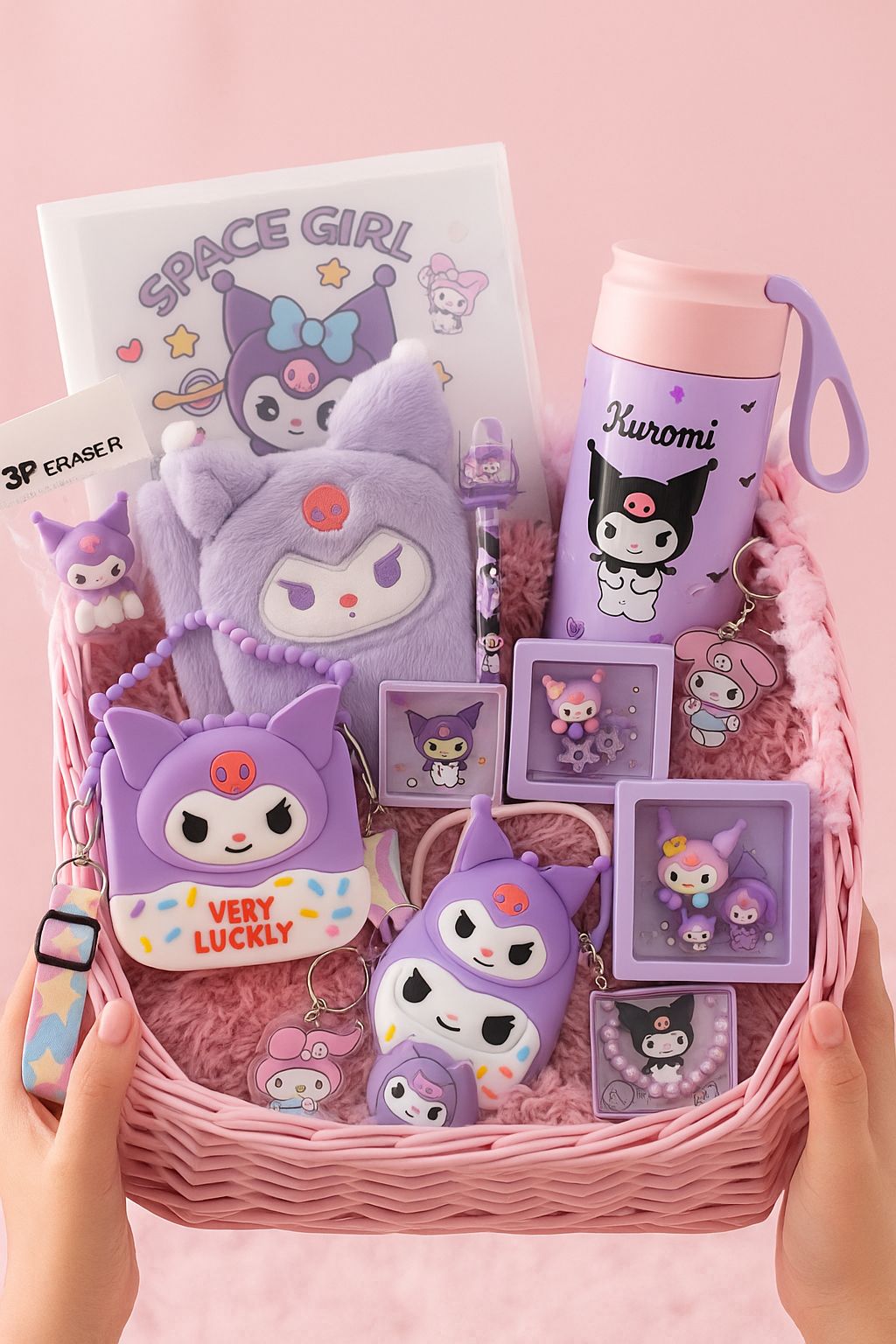 Unwrap the ultimate surprise with our Mega Kuromi Hamper, featuring 10+ exclusive and fancy Kuromi-themed items — perfect for every Sanrio and kawaii lover! This luxury set is a dream come true, combining cute stationery, accessories, and collectibles that scream pure Kuromi aesthetic 💫