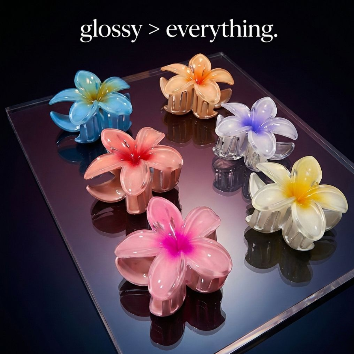 The Glossy Korean Gradient Claw Clip is a sleek and stylish accessory that adds a soft pop of color to your everyday hairstyles πŸ’•