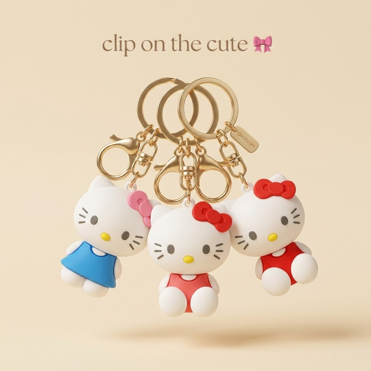 Add a touch of cuteness to your everyday essentials with this adorable Hello Kitty keychain! Featuring the beloved white cartoon cat in vibrant outfits — pink, blue, yellow, or red — these keychains are perfect for girls, kids, and Hello Kitty fans.