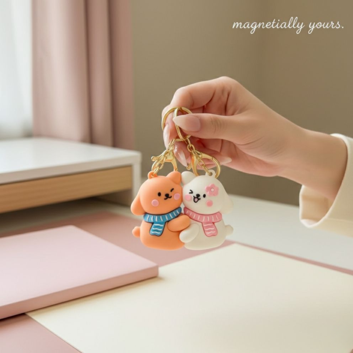 Carry puppy love everywhere with the Cute Puppy Magnetic Keychain Set 😍 Featuring two adorable puppy characters that connect with a magnetic snap, this set is perfect for couples, best friends, or dog lovers ✨ Bring them together and watch them stick – super cute and fun!