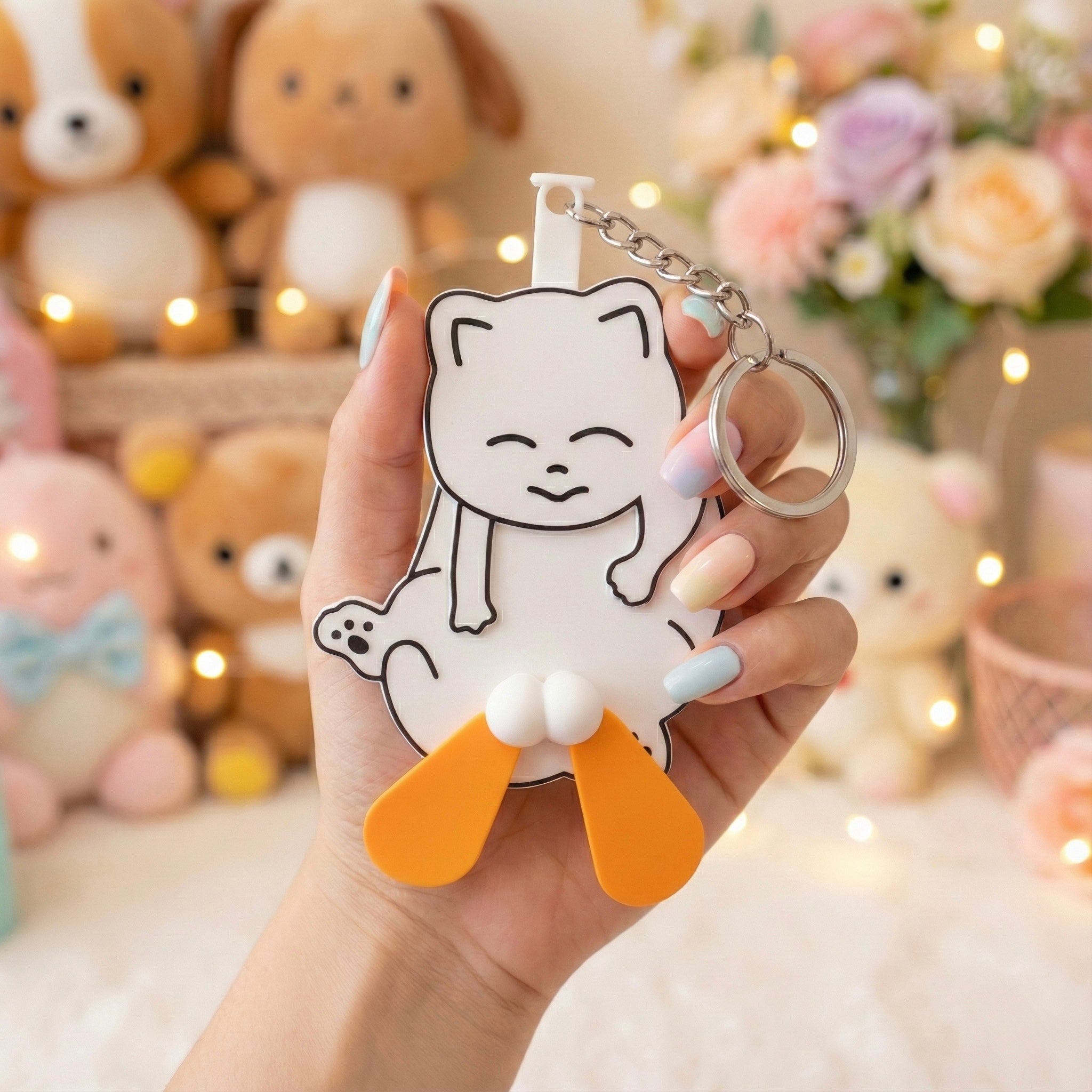This kawaii kitty fan keychain bag charm is here to make your everyday accessories extra cute and fun. Designed like an adorable chubby kitty with tiny fan-style moving flaps, this charm feels like a little playful buddy hanging on your bag. Every time it moves, it looks like the kitty is happily fanning — instantly making you smile.