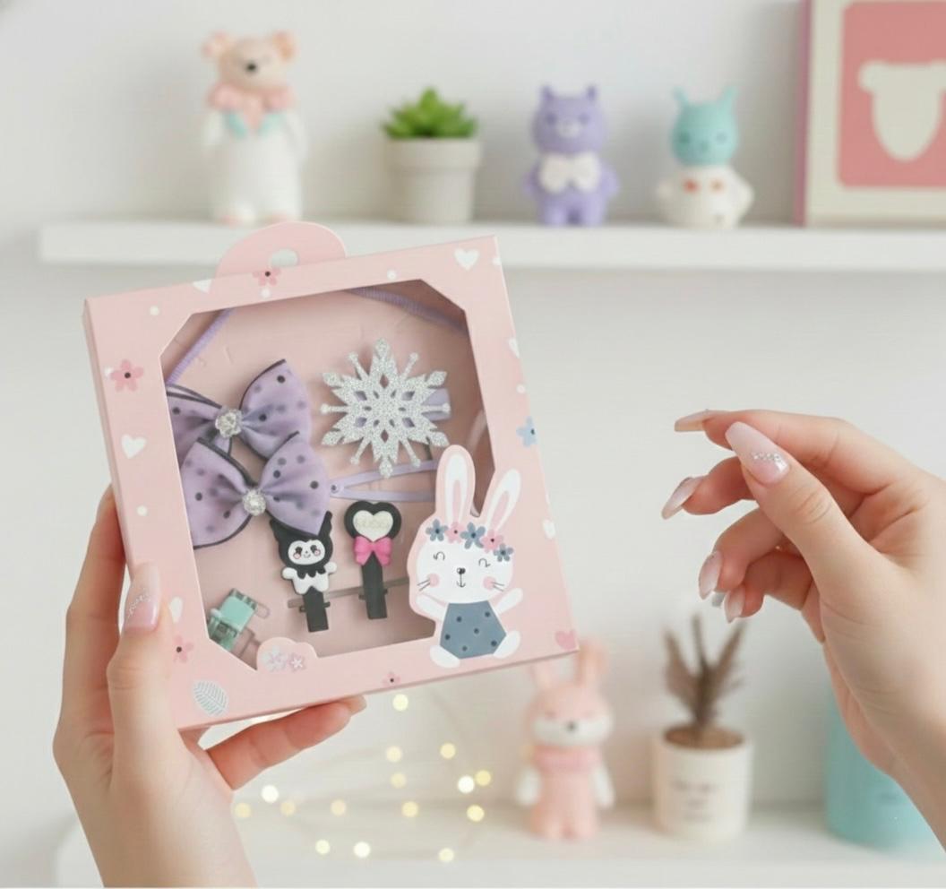 ✨ Complete Hair Accessory Kit – This set includes Kuromi-themed hair clips, bows, and headbands, perfect for creating cute and stylish hairstyles every day.