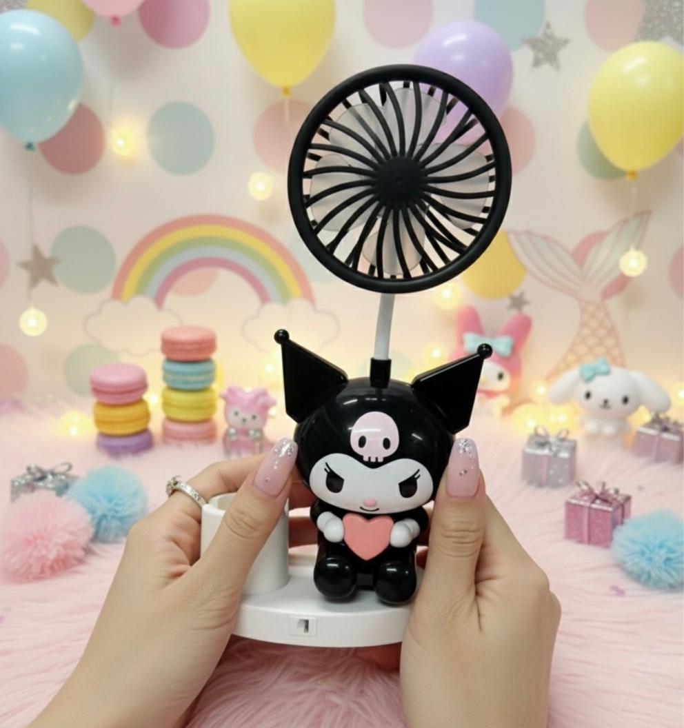 Kuromi Cute Black USB Desk Fan with Sharpener & Stand