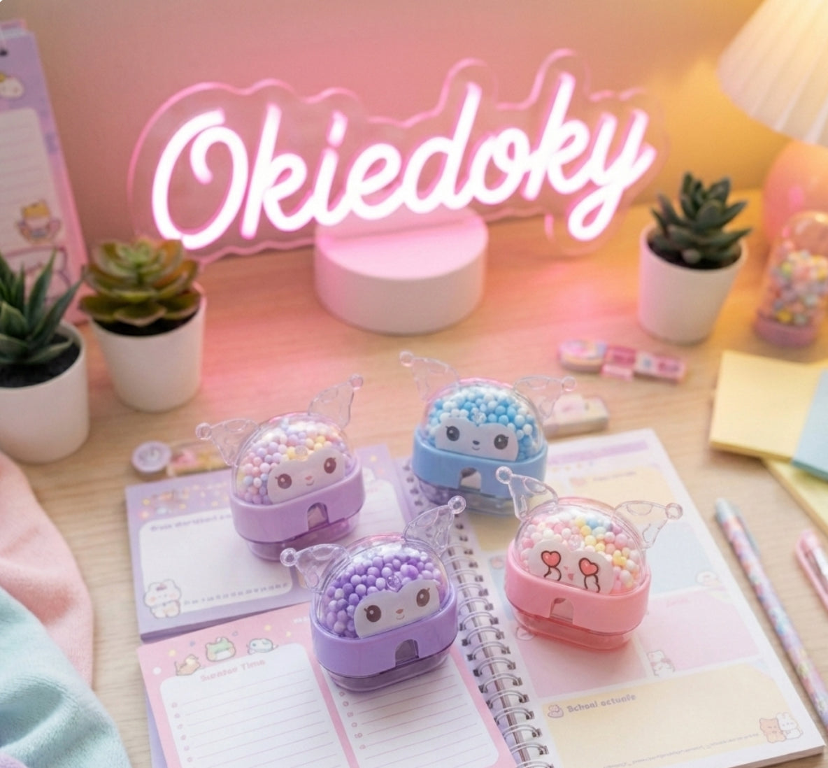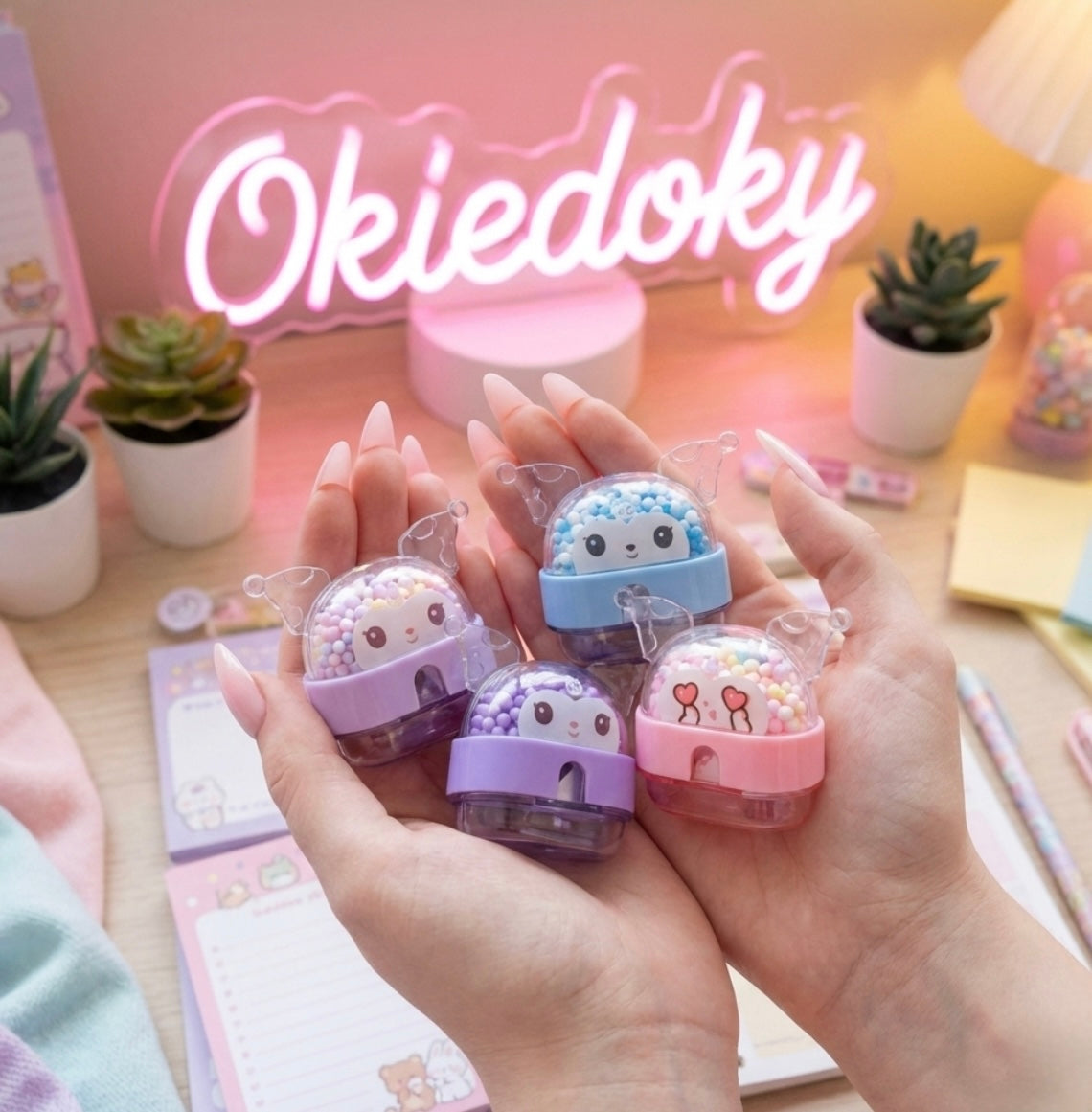 Featuring a pastel Kuromi design with floating beads inside, this sharpener is not just cute—it’s also mess-free thanks to its built-in shavings container.