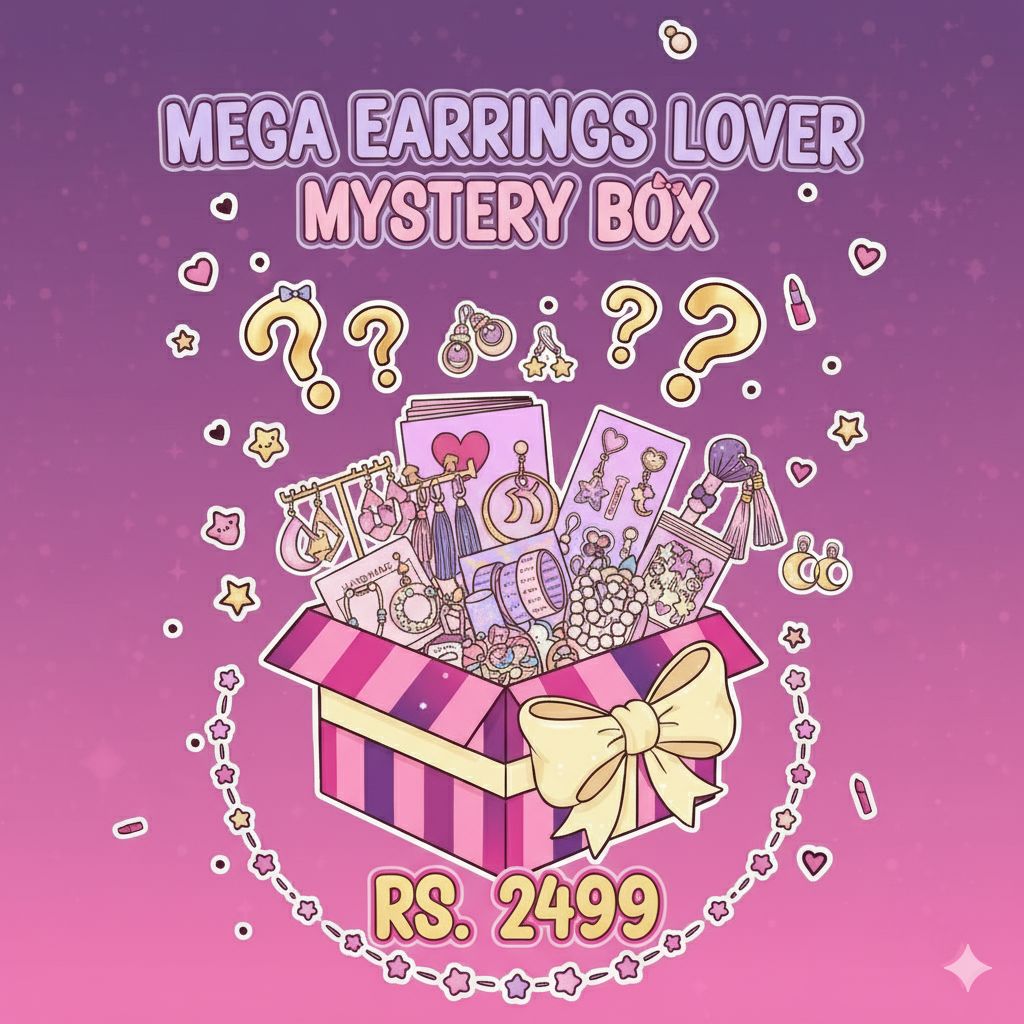 Calling all earring enthusiasts! The Mega Earrings Lover Mystery Box is packed with a curated collection of trendy, cute, and statement earrings that will instantly elevate your style. Perfect for fashion lovers who adore surprises, this box is designed to bring sparkle, charm, and endless excitement with every unboxing. 💎✨