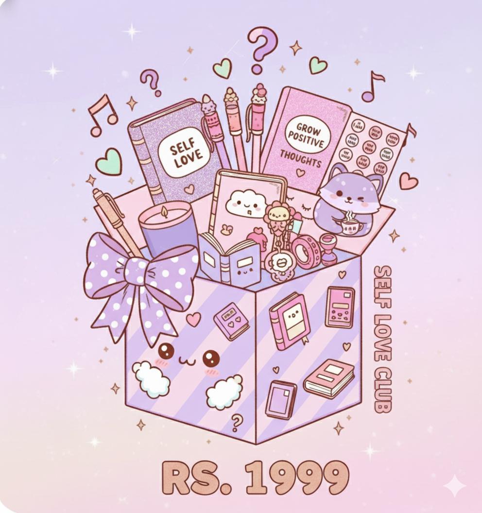 The Self Love Club Mystery Box is your ultimate bundle of pastel charm, happiness, and empowerment. Open it and indulge in delightful surprises that remind you how wonderful you are! 💖🎁