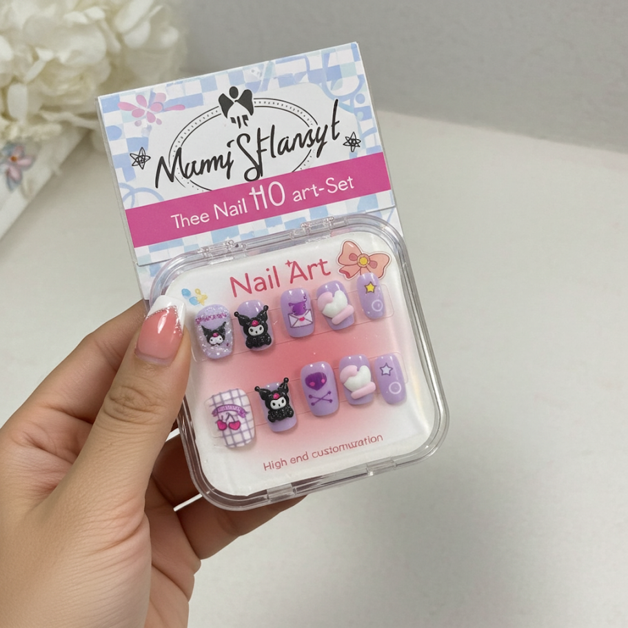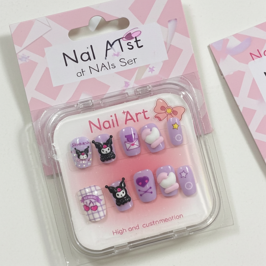 Kuromi Lavender Press-On Nails – Kawaii Nail Art Set