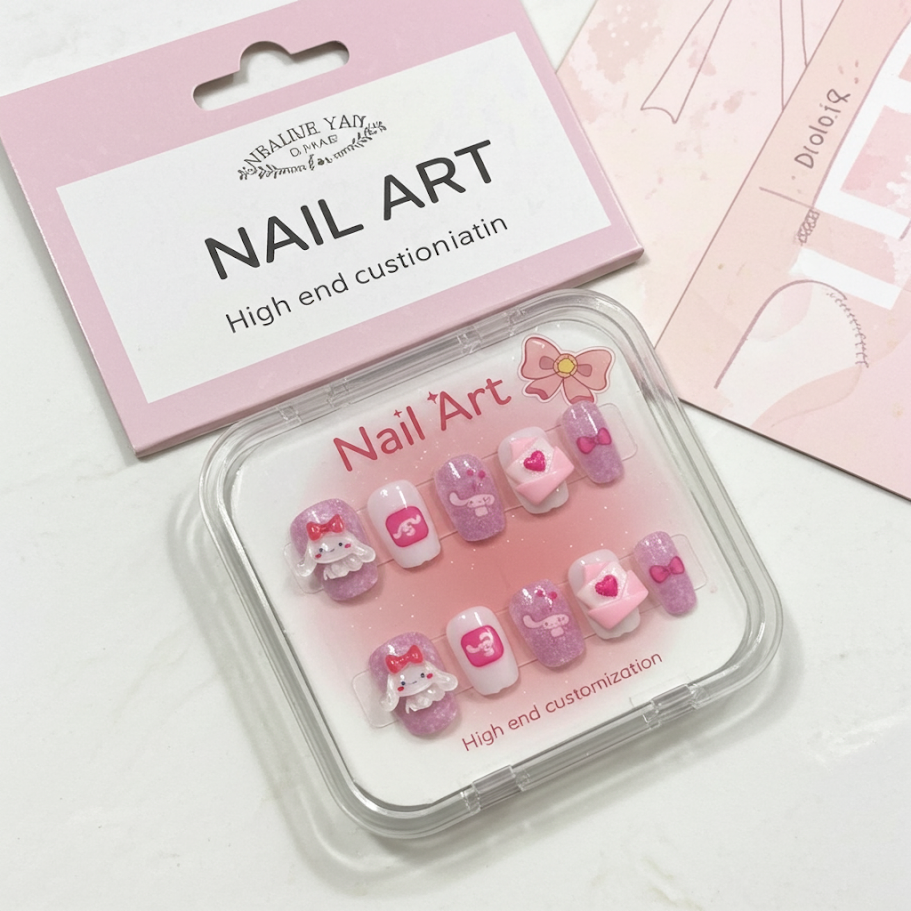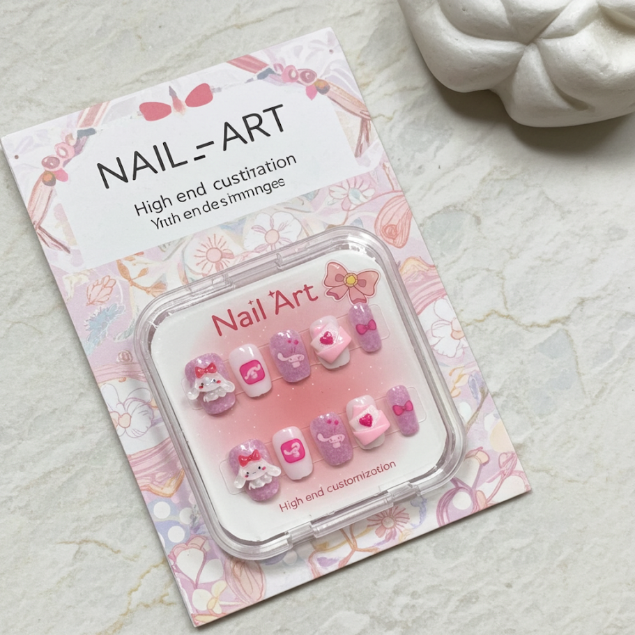 My Melody Pink Glitter Press-On Nails – Kawaii Nail Art Set