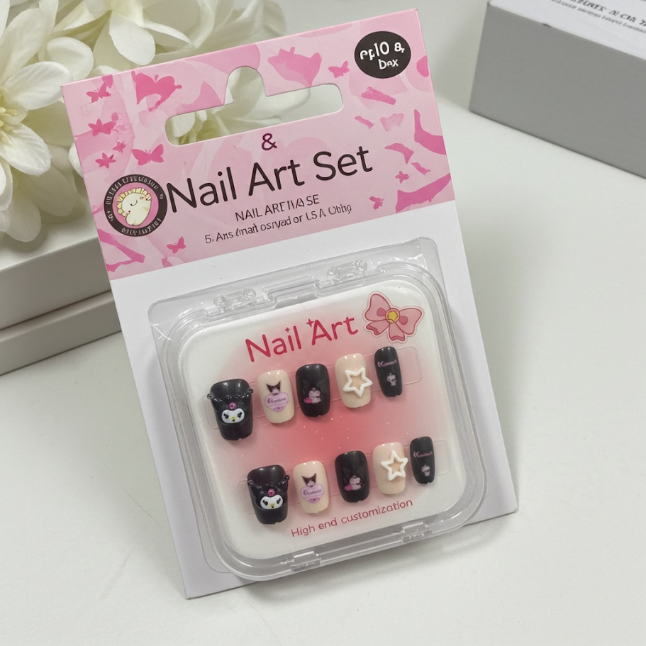 Kuromi Black & Pastel Press-On Nails – Kawaii Nail Art Set
