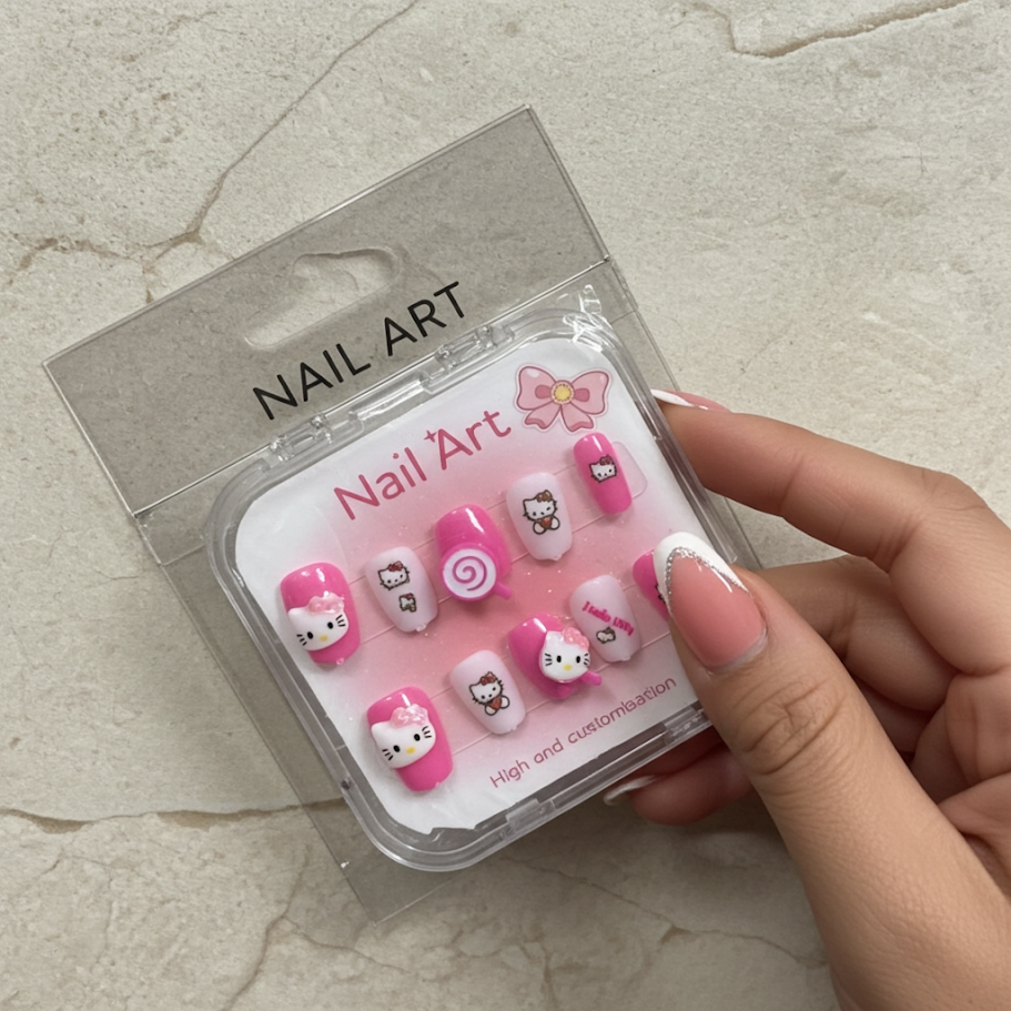 Hello Kitty Pink Press-On Nails – Kawaii Nail Art Set