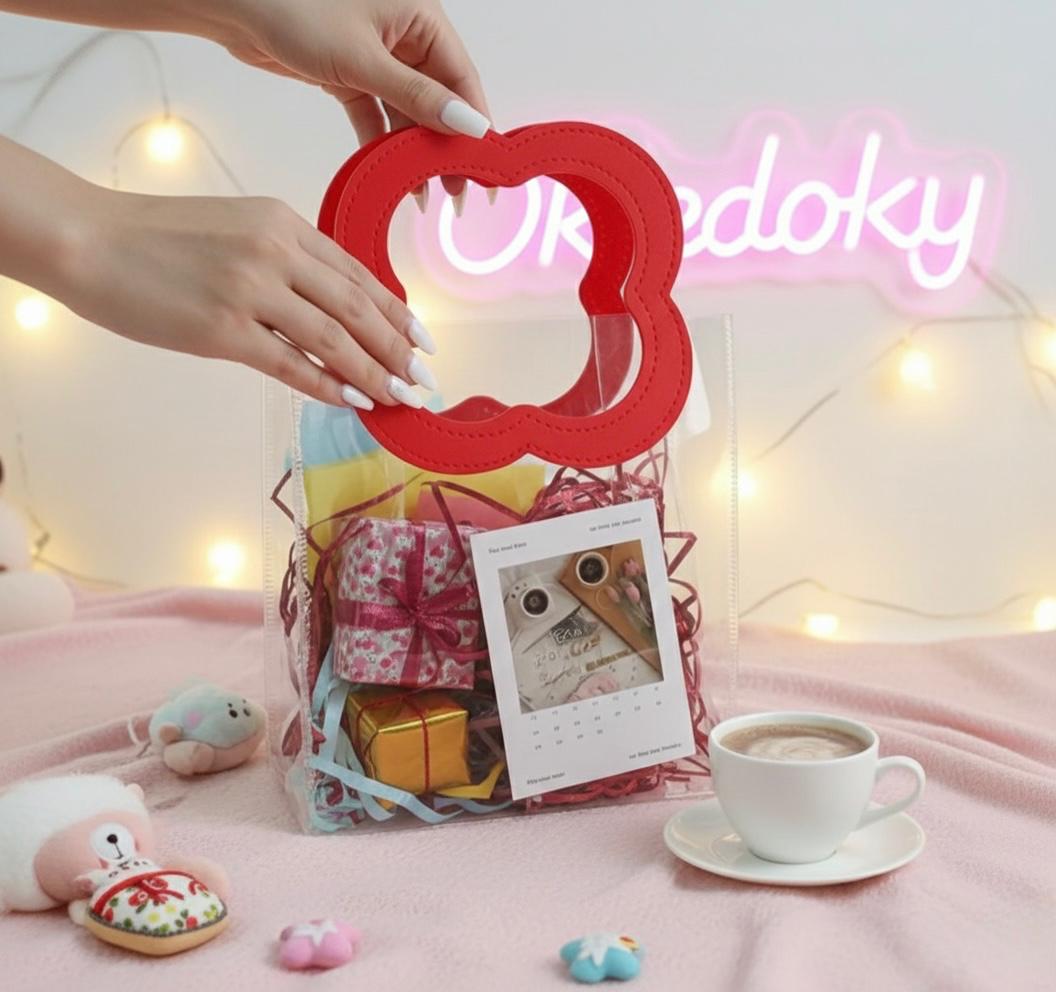 Whether you’re filling it with candies, small presents, beauty products, or stationery, this reusable transparent tote bag is a chic and practical way to make your gift unforgettable.