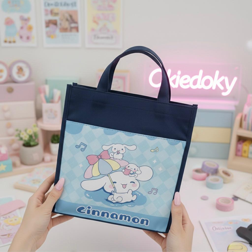 - DESIGN FEATURES: Adorable Cinnamoroll -themed canvas tote bag featuring cute printed designs, including Cinnamoroll