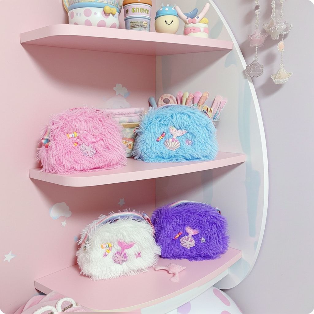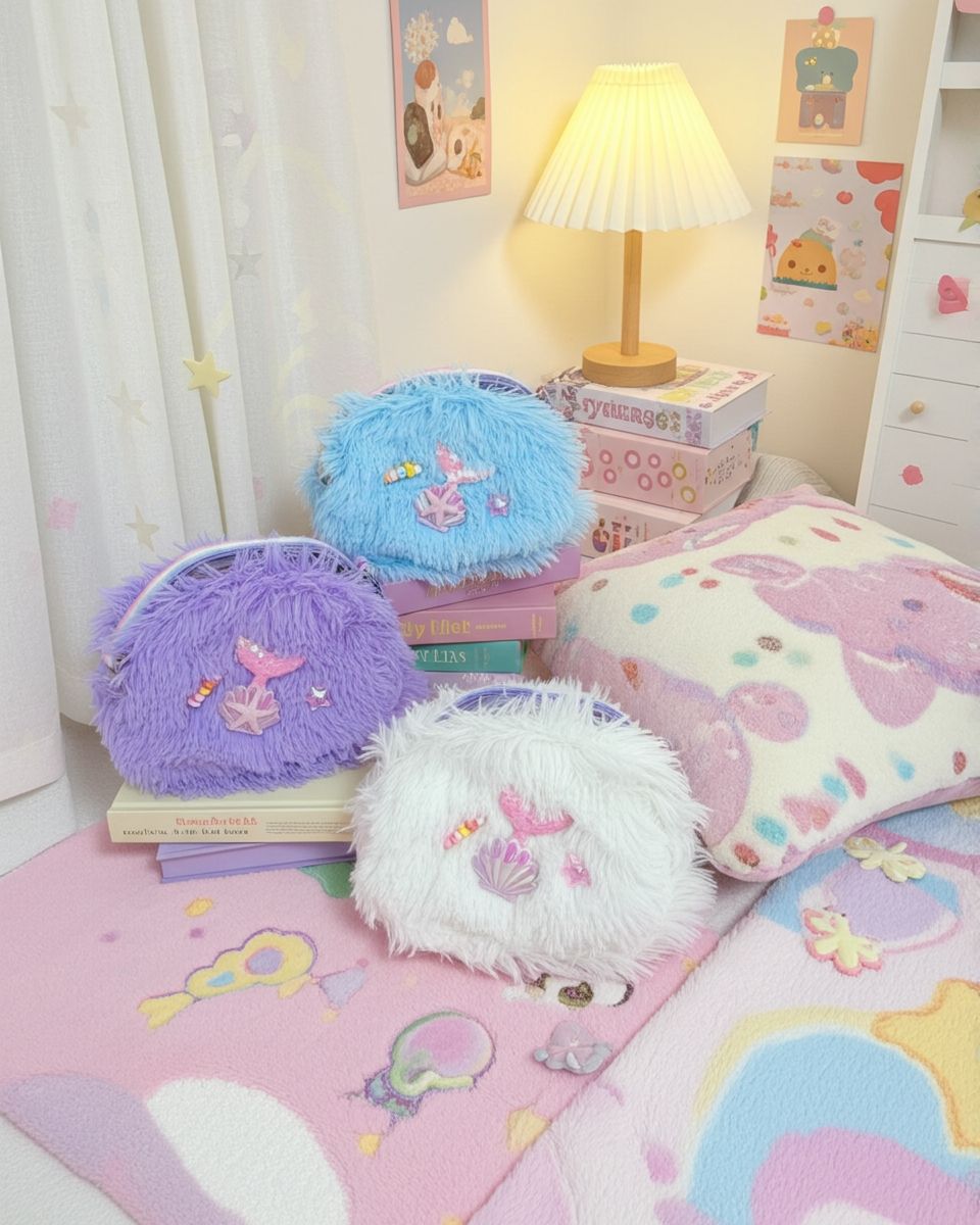 A: Its combination of ultra-soft faux fur, mermaidcore patches, and a perfectly compact size creates the ideal magical accessory. Loved by kawaii and pastel aesthetic fans, it’s cute, functional, and adds a touch of fantasy to any outfit.