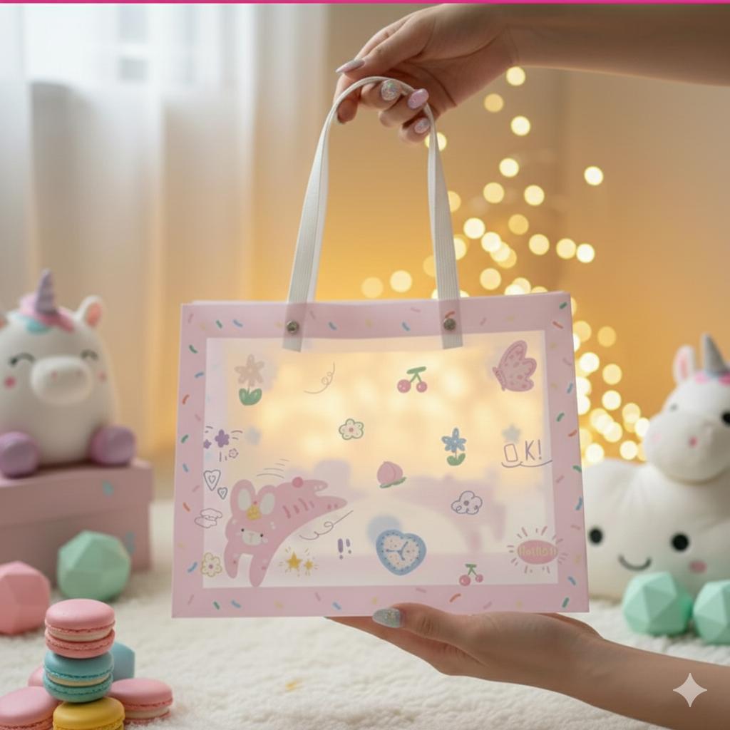 • Semi-Transparent Design: Crafted from durable, clear pink vinyl material, allowing the beautiful gift inside to be glimpsed while adding a soft pink glow.
