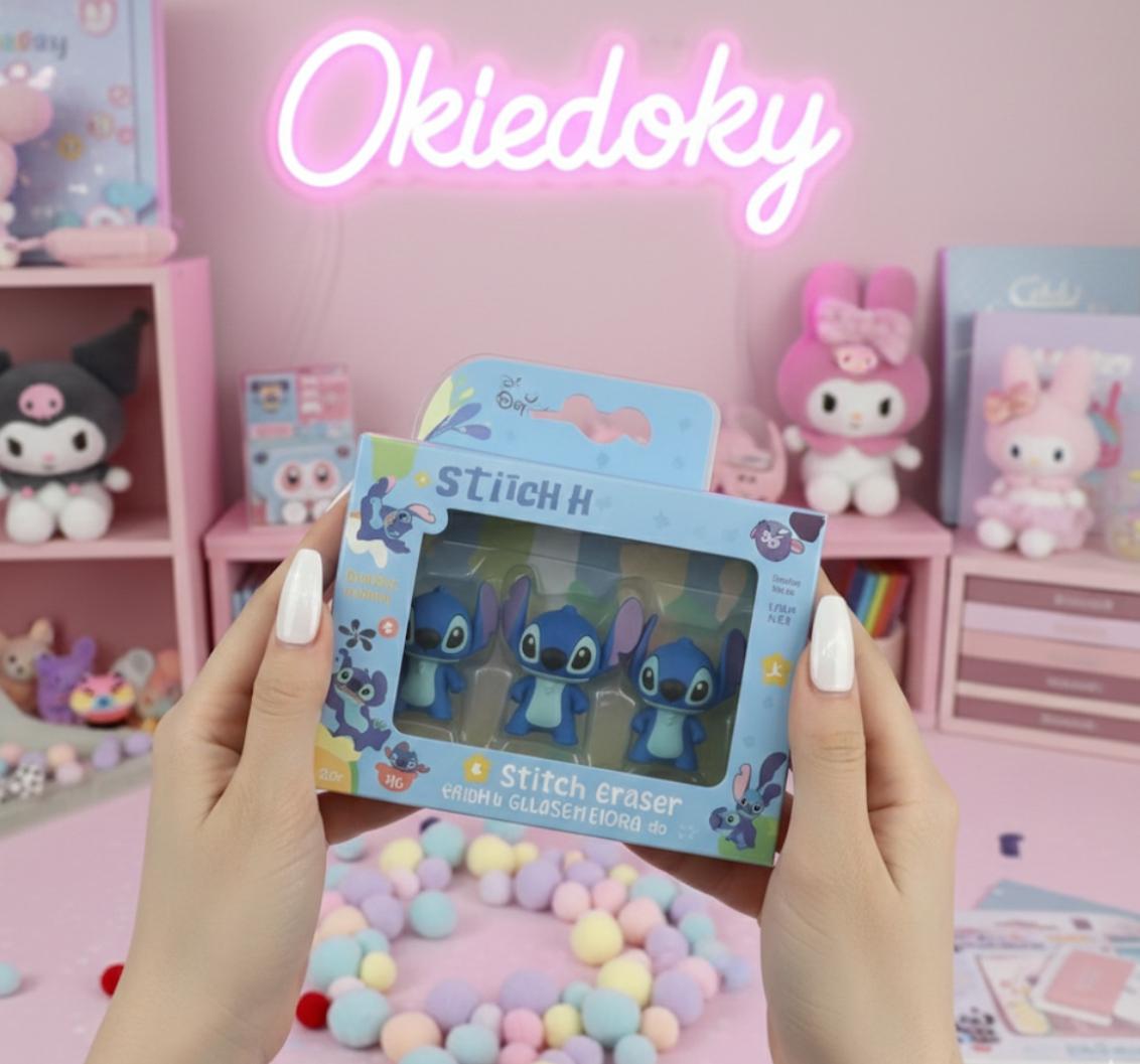 Bring your stationery game to life with this adorable Kawaii Stitch Eraser Set (Pack of 3)! These 3D cartoon erasers are shaped like the beloved Disney character Stitch and are perfect for adding fun and charm to your school or office supplies. Made with non-toxic, high-quality rubber, these erasers are safe for kids and durable for everyday use.