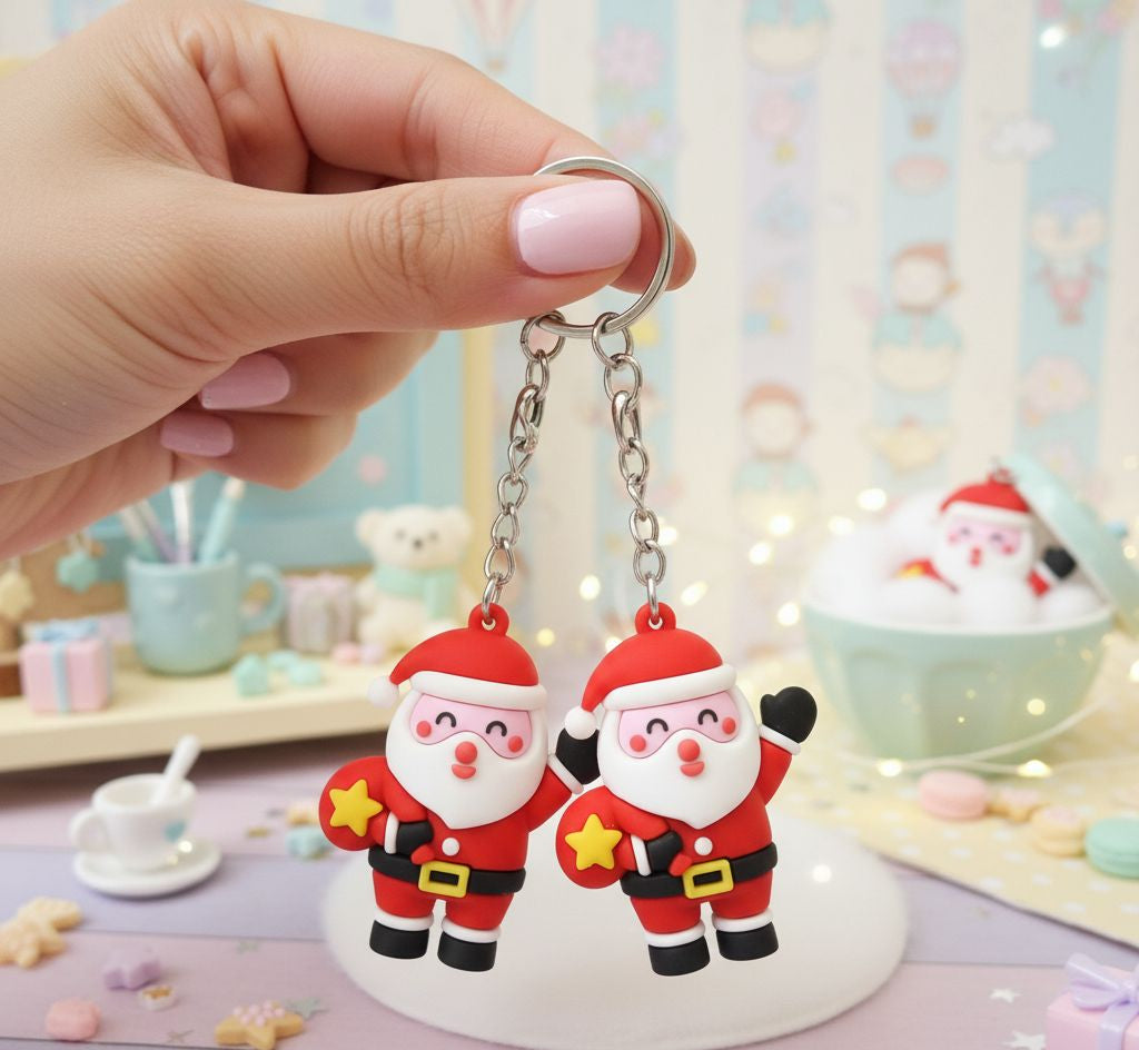 Get ready for the holidays with this adorable Santa Claus-inspired keychain! Featuring a jolly Santa figure in his classic red and white suit, holding a yellow star, this charm is perfect for adding festive cheer to your keys or bag.