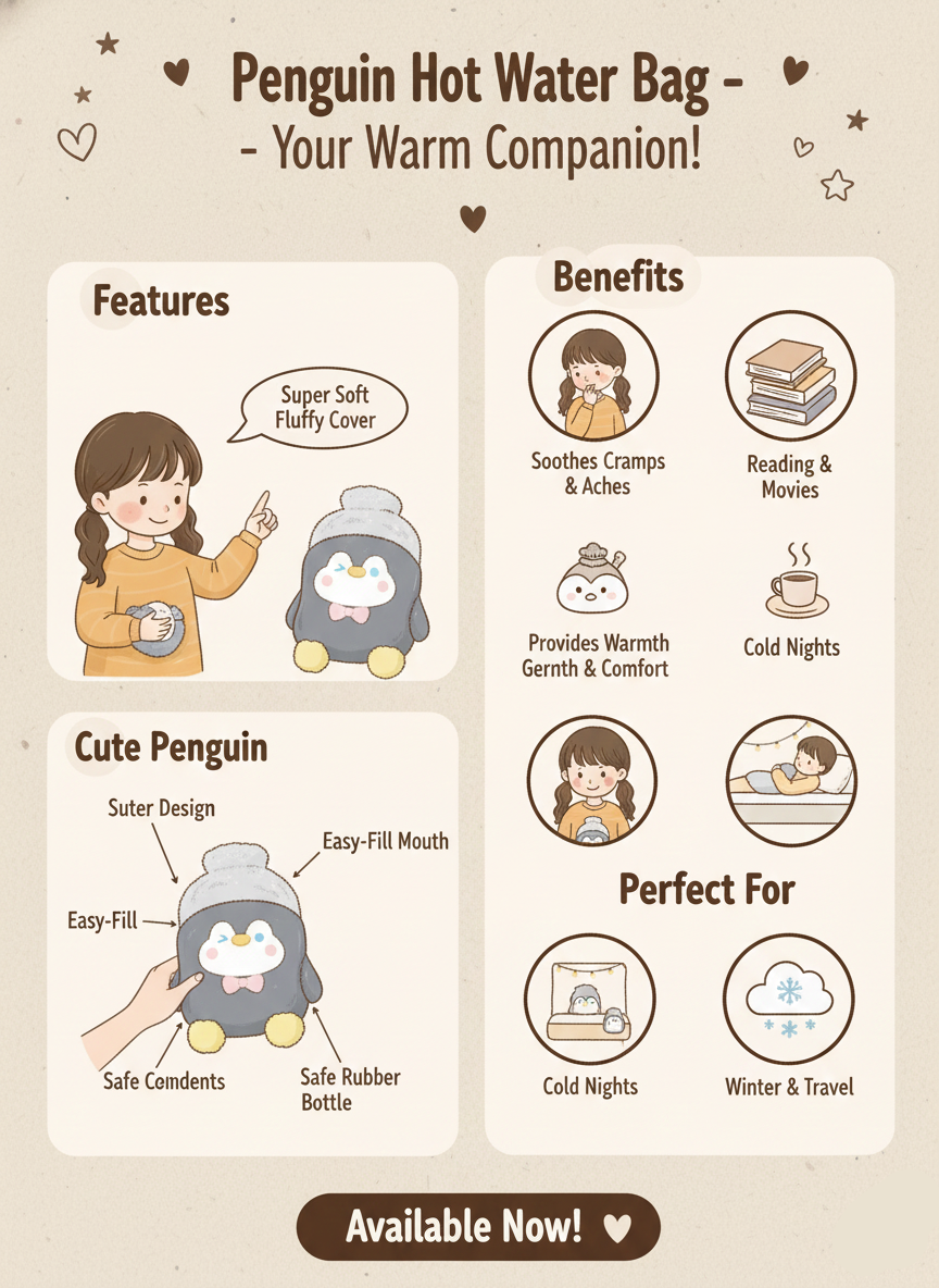 A: This hot water bag combines soothing long-lasting warmth with an ultra-soft plush cover designed for maximum comfort. Perfect for cramps, winter nights, or stress relief, it’s cozy, safe, adorable, and crafted to be your go-to comfort essential. Loved by Okiedoky fans who want both function and cute aesthetics in their self-care routine.