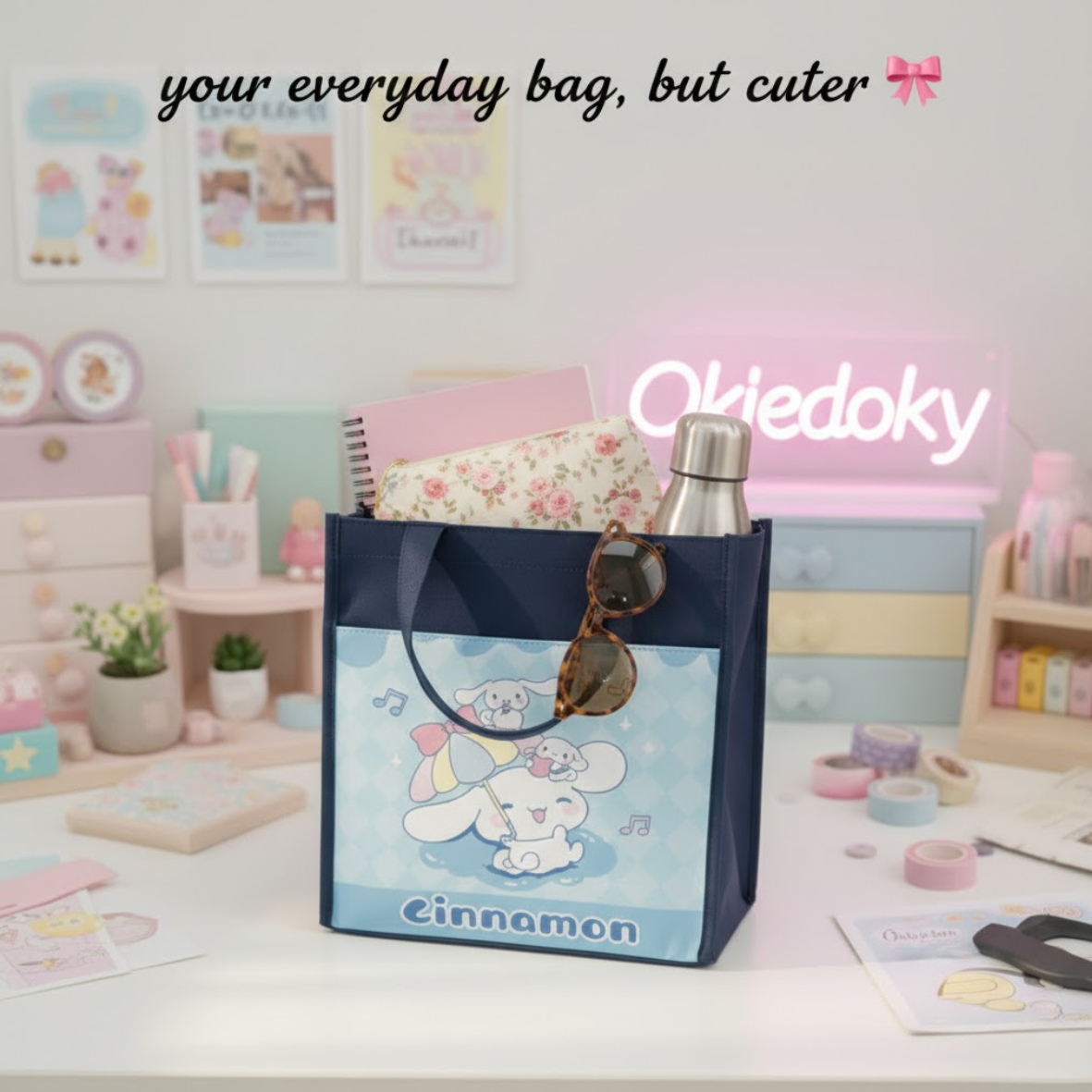 - DESIGN FEATURES: Adorable Cinnamoroll -themed canvas tote bag featuring cute printed designs, including Cinnamoroll