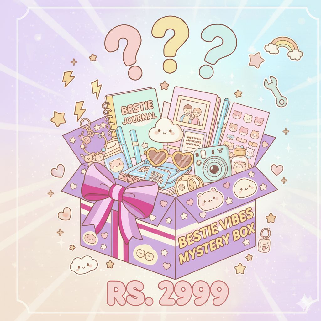 Celebrate friendship and cuteness with the Bestie Vibes Mystery Box! Filled with adorable, kawaii, and pastel-inspired stationery, accessories, and lifestyle goodies, this box is perfect for anyone who loves charming surprises to share or enjoy with their bestie. Each handpicked item is designed to make unboxing playful, joyful, and full of friendship magic. 🎀🌷