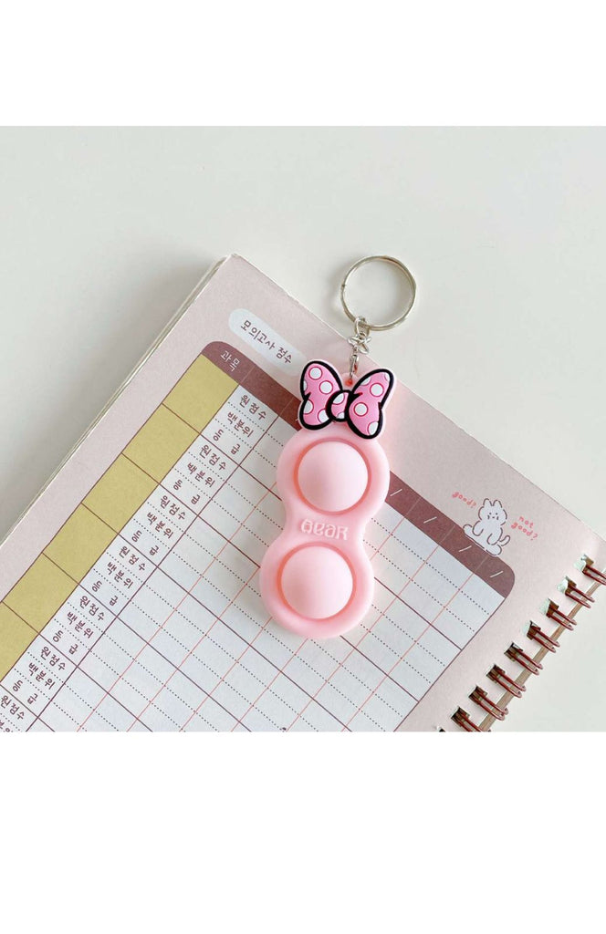 The bottom is a sensory two-bubble fidget toy that provides a satisfying 'pop' sound when pressed. These keychains are great for stress relief, promoting focus for those with ADHD/ADD, or just keeping fidgety hands busy. Clip them onto your backpack, keys, purse, or pencil case! The vibrant colors and popular character designs make them a huge hit for kids and adults alike. 💖