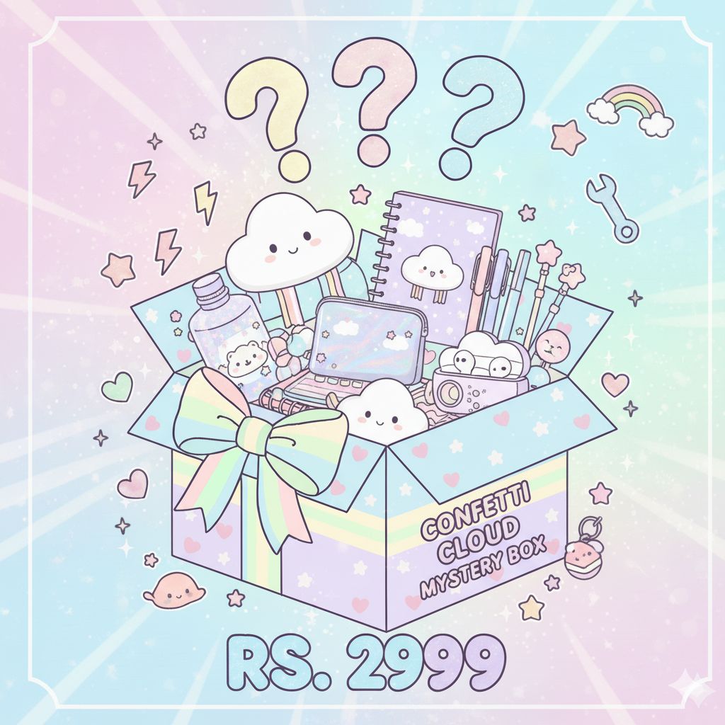 Step into a world of fun and whimsy with the Confetti Cloud Mystery Box! Filled with adorable, kawaii, and pastel-inspired stationery, accessories, and lifestyle goodies, this box is perfect for anyone who loves vibrant, cheerful surprises. Each item is thoughtfully curated to make your unboxing experience joyful, colorful, and full of charm. 🌸🎀