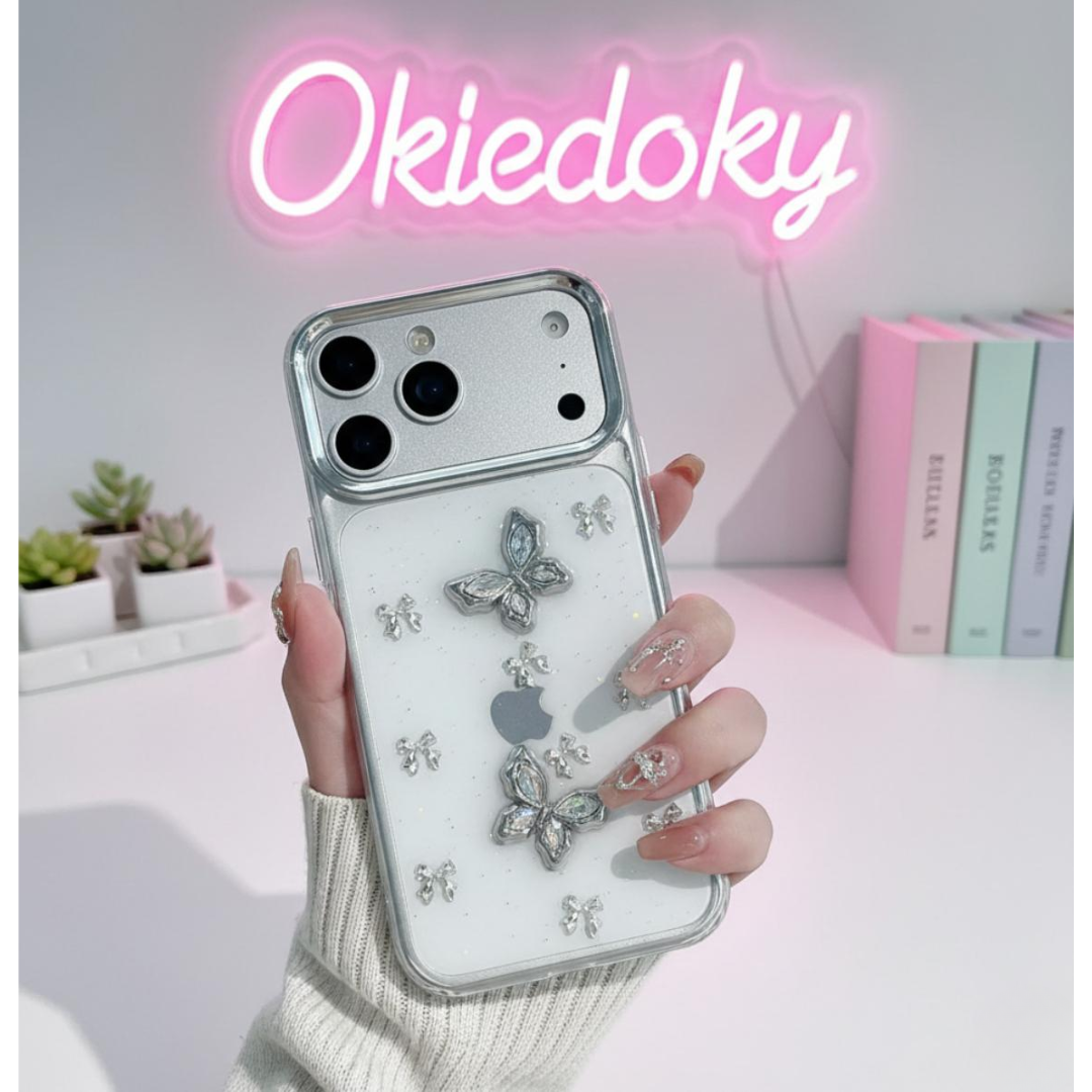 This case brings a soft shine to your phone with its 3D butterfly gems that reflect light in a very calm, pretty way. The small bow details add a gentle touch without making the design too busy. The clear back keeps the phone looking clean, while the smooth edges make it easy to hold. It protects without feeling heavy, and the raised sides keep the camera safe. This cover is made for someone who likes quiet, neat, and soft-looking designs. It keeps the phone safe and still looks cute from every angle.