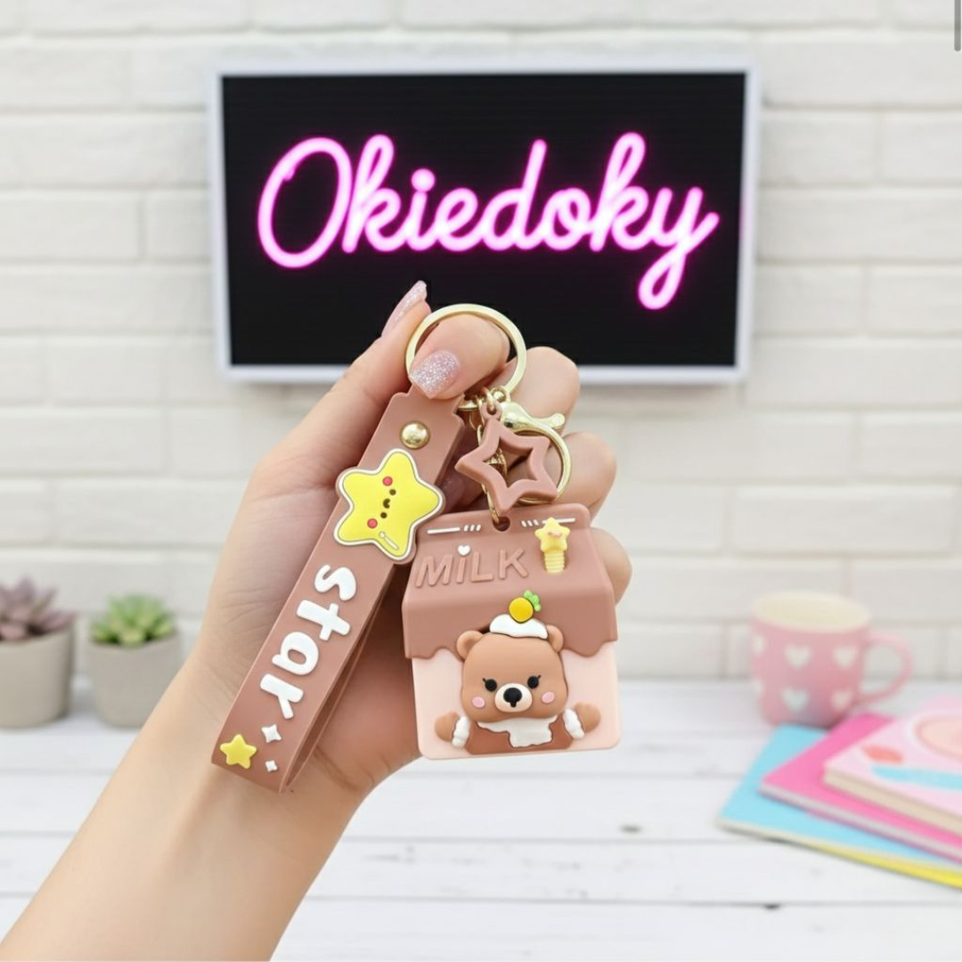 This bear milk carton keychain blends charming design with practical portability, making it a delightful kawaii accessory for all ages 🤎