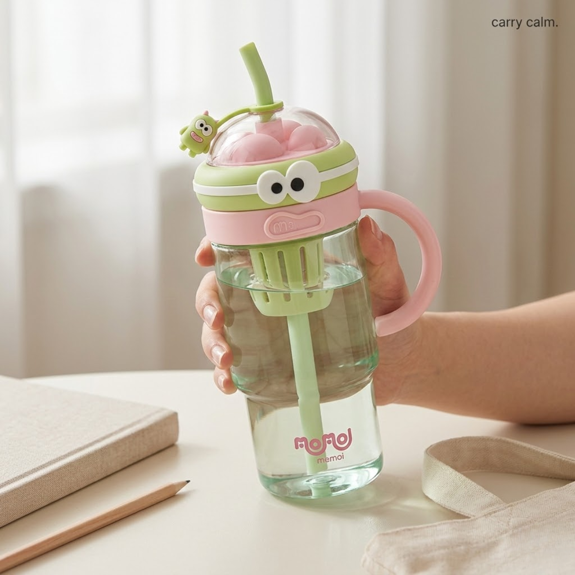 Cute Cartoon Character Tumbler Cup with Straw & Handle
