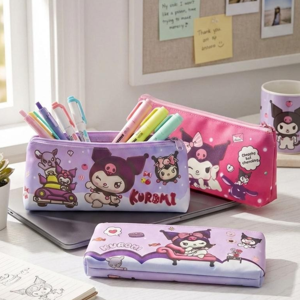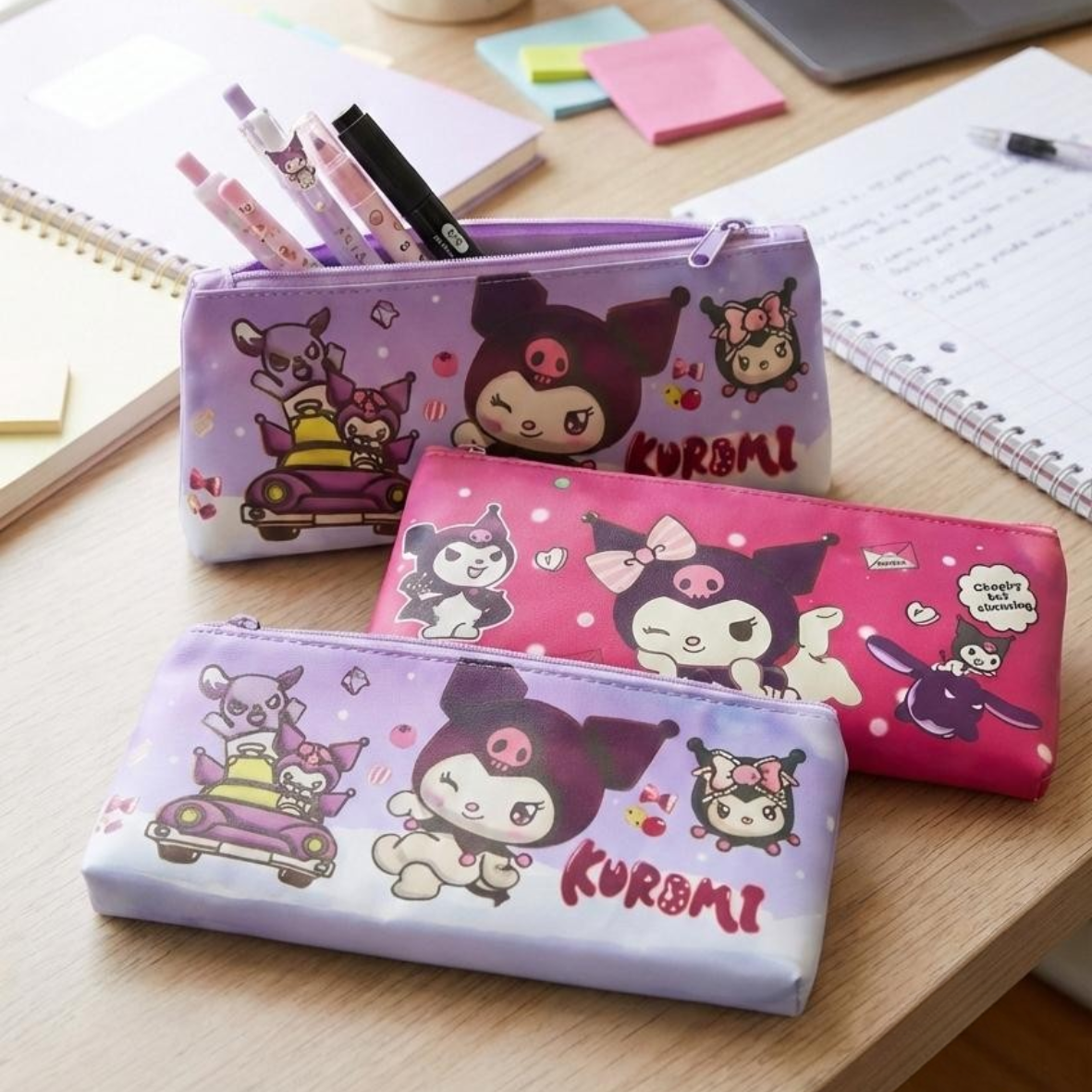 Featuring the mischievous and adorable Kuromi from Sanrio, this pouch keeps all your pens, pencils, erasers, sticky notes, and small essentials neatly in place β€” while looking irresistibly cute πŸ’•πŸŒΈ