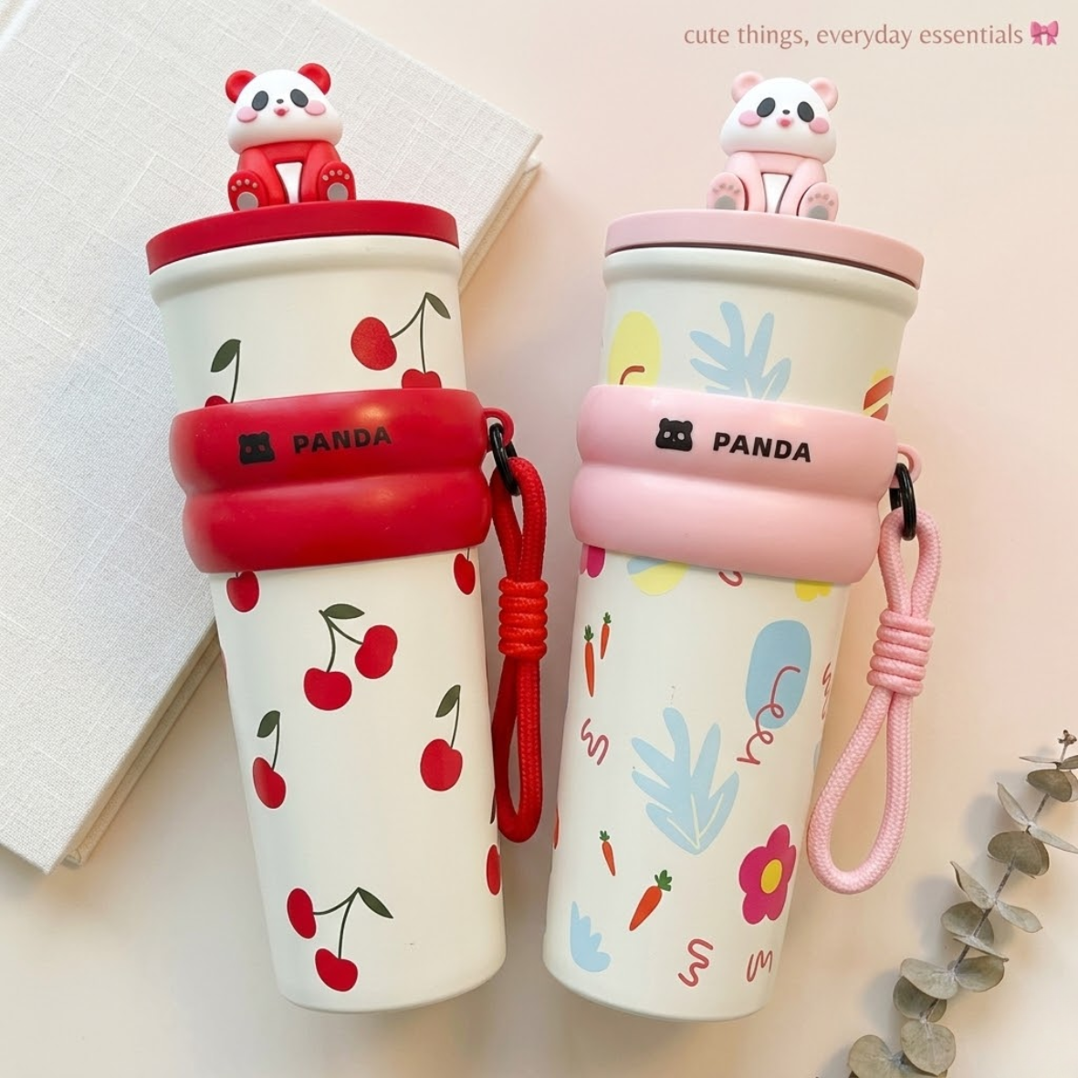 Stay hydrated in style with these super cute Panda Tumblers featuring a 3D panda topper, comfy silicone grip, and charming cherry or floral prints. Whether it’s for school, work, or gifting – these kawaii tumblers are perfect for cute vibes on the go!