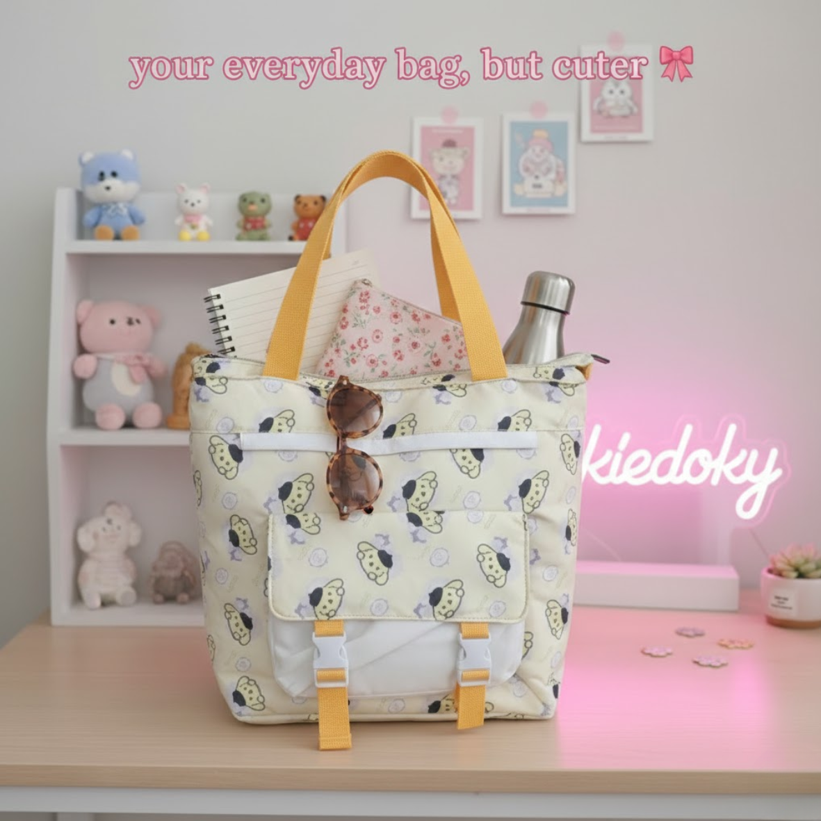 - Adorned with colorful Pompompurin, these tote bag adds a touch of sass and beauty to your outfit. The vibrant colors and intricate design make it a standout piece that complements various styles.