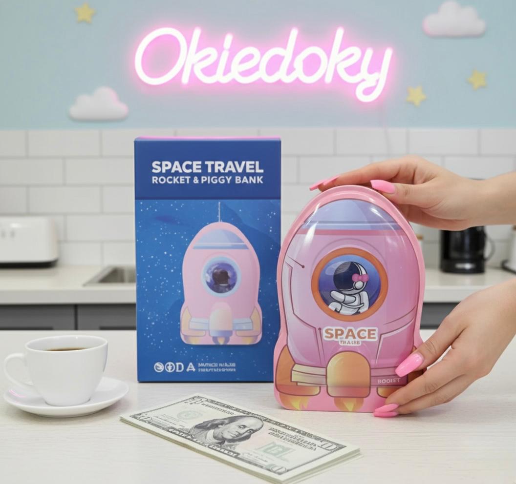 Whether for pocket money savings or simply as a cute collectible, this Pink Rocket Piggy Bank is a fun and practical choice for every little astronaut dreamer.
