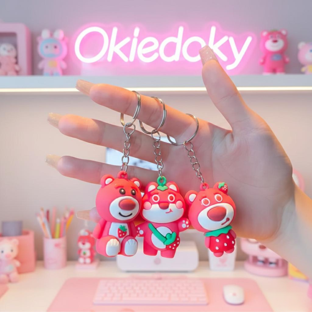 Whether you want a fun touch for your school bag or a small, thoughtful gift for a friend, this strawberry bear keychain is sure to bring smiles. Each style is sold individually, so you can pick your favourite or collect them all!