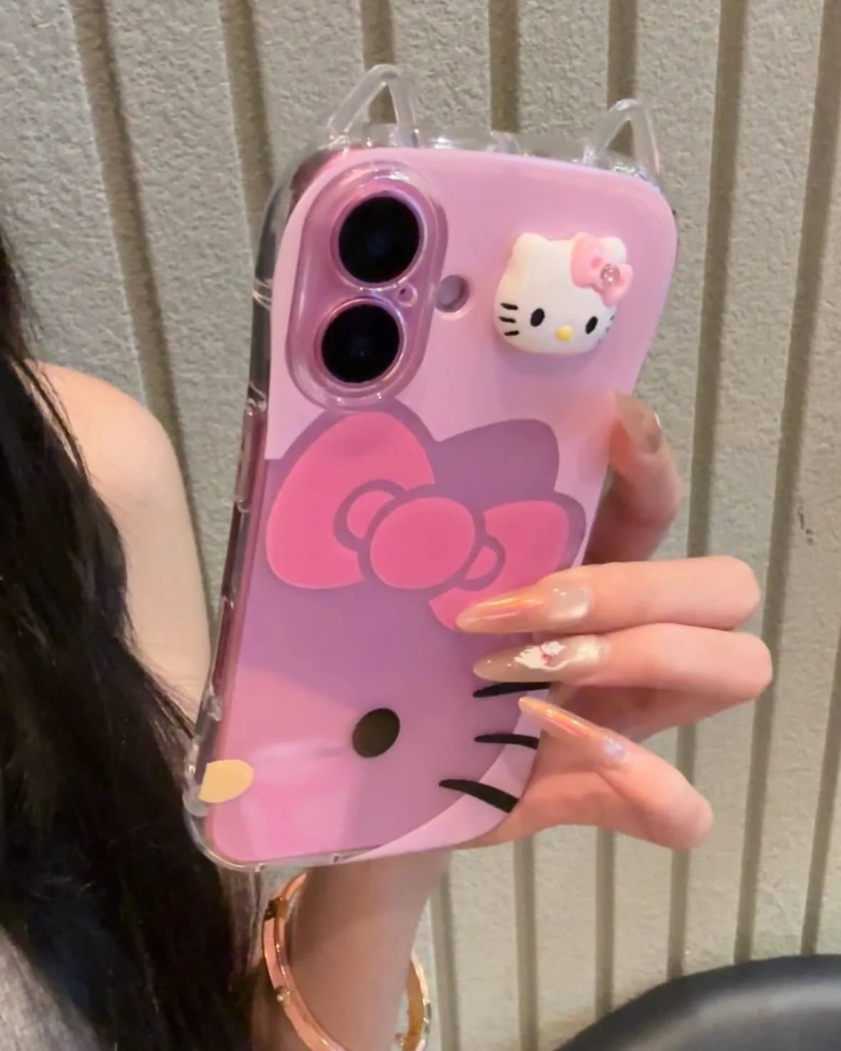 Say hello to ultimate kawaii vibes with our Hello Kitty 3D Bow Cases! Available in two dreamy shades—pastel pink and berry pink—these cases feature raised kitty ears, a giant 3D bow, whisker detailing, and an adorable Hello Kitty head charm near the camera. The darker variant comes with a matching mini purse charm, making it perfect for Hello Kitty lovers who want a statement accessory with full phone protection.