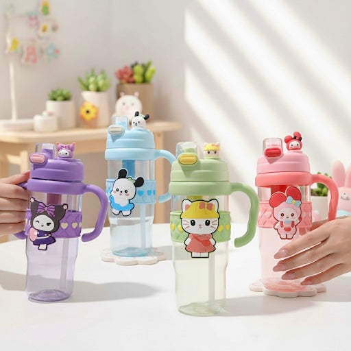 Designed with adorable pastel colours and cute cartoon figures, this bottle is perfect for kids, teens, and anyone who loves all things kawaii! The easy flip-top straw makes drinking fun and spill-free, while the comfy side handle ensures you can carry it anywhere with ease.