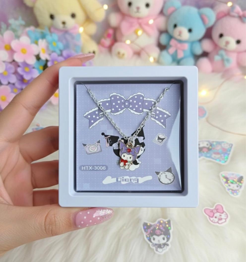 Kawaii Kuromi Necklace – Sanrio Charm Pendant Jewelry in Gift Box