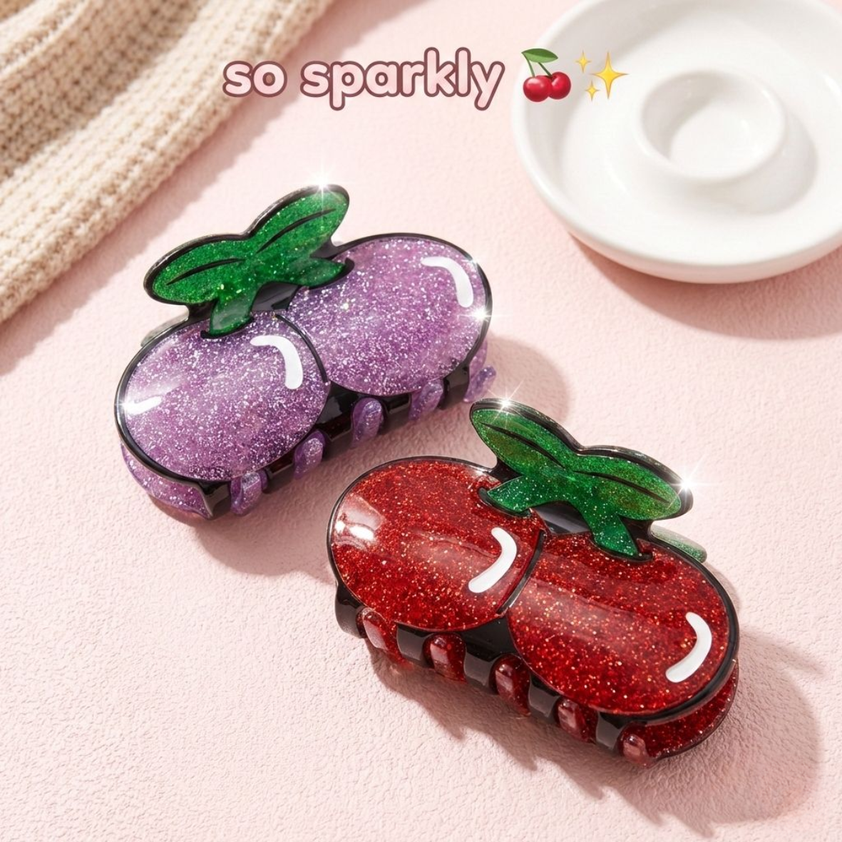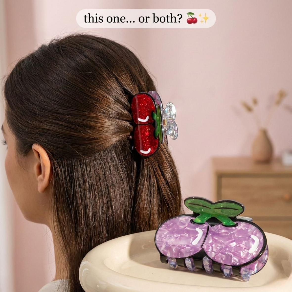 Inspired by trendy Korean aesthetics, this adorable cherry-shaped clip brings a fresh, youthful vibe to messy buns, half-up styles, or quick twists 💫🎀 Whether you're going for a soft girl look or a cute summer outfit, this clip completes it perfectly 🌸