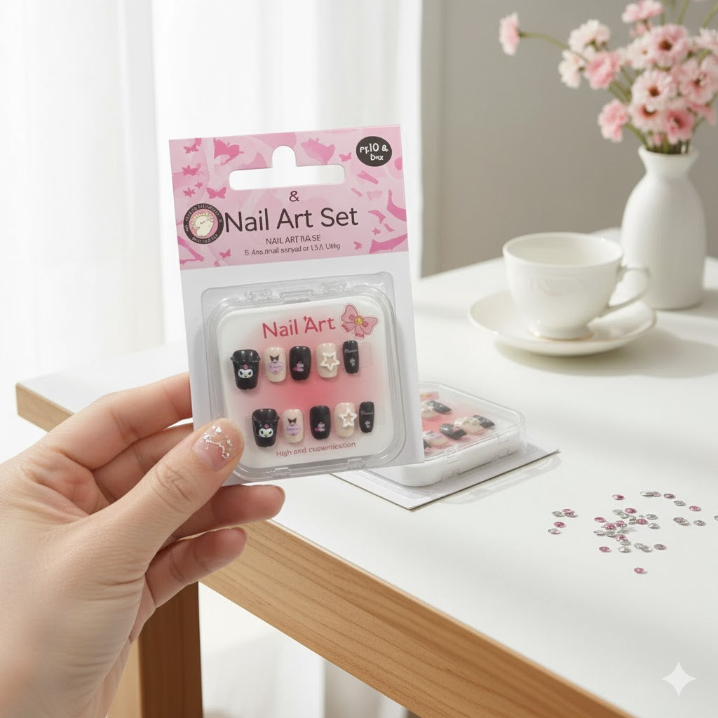 Kuromi Black & Pastel Press-On Nails – Kawaii Nail Art Set